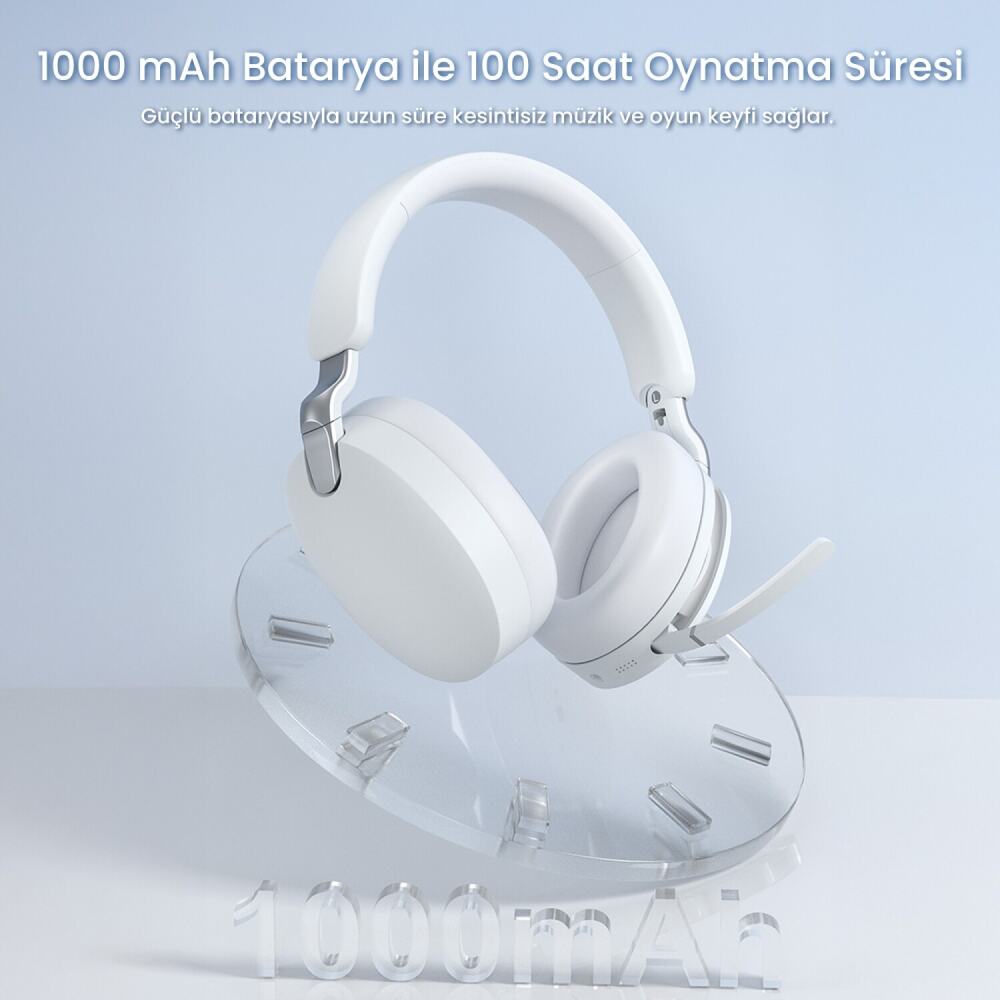 Güçlü 1000mAh batarya kapasitesi ile ANC kapalıyken 100 saat, ANC açıkken 60 saat boyunca kesintisiz müzik deneyimi sağlar. Yaklaşık 3 saatte tam şarj olan batarya, USB Type-C bağlantı noktasıyla güvenli ve hızlı şarj imkanı sunar. Uzun yolculuklarda veya yoğun iş günlerinde enerjiniz hiç bitmez.