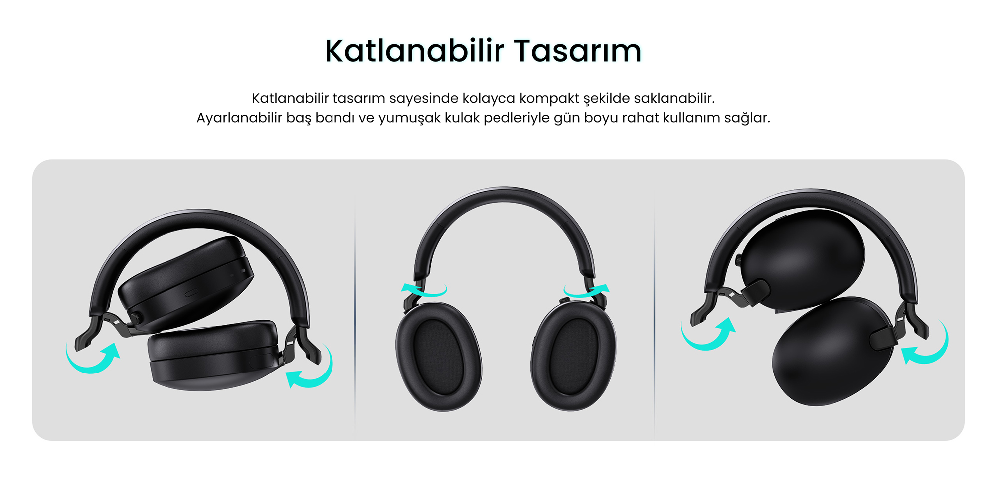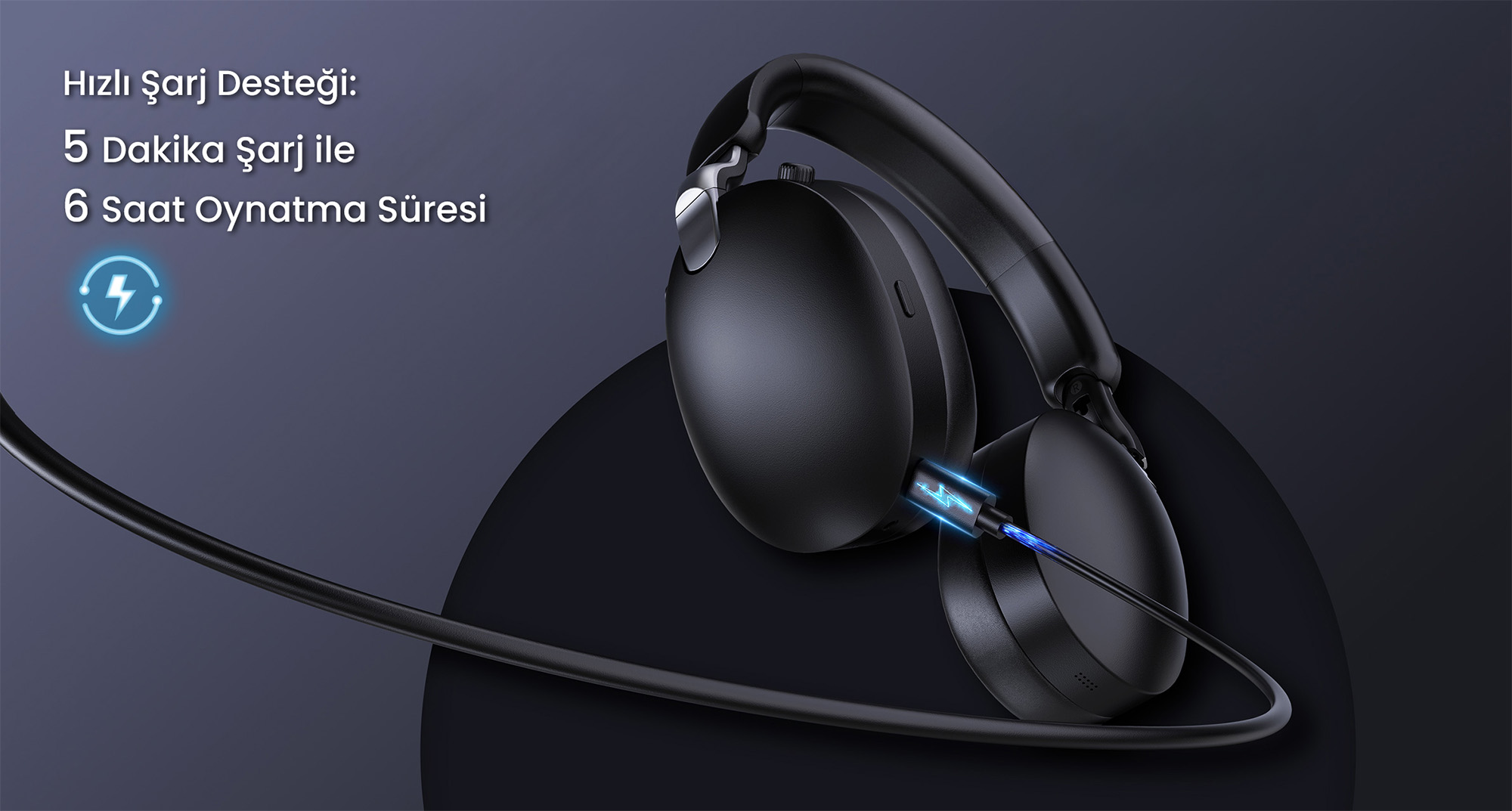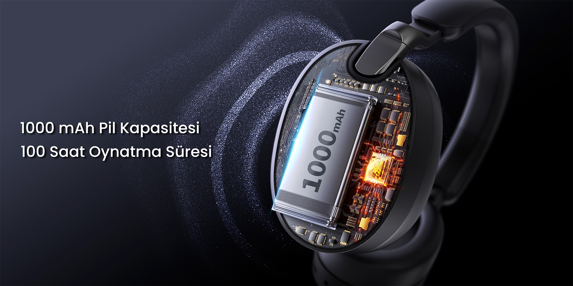 Güçlü 1000mAh batarya kapasitesi ile ANC kapalıyken 100 saat, ANC açıkken 60 saat boyunca kesintisiz müzik deneyimi sağlar. Yaklaşık 3 saatte tam şarj olan batarya, USB Type-C bağlantı noktasıyla güvenli ve hızlı şarj imkanı sunar. Uzun yolculuklarda veya yoğun iş günlerinde enerjiniz hiç bitmez.
