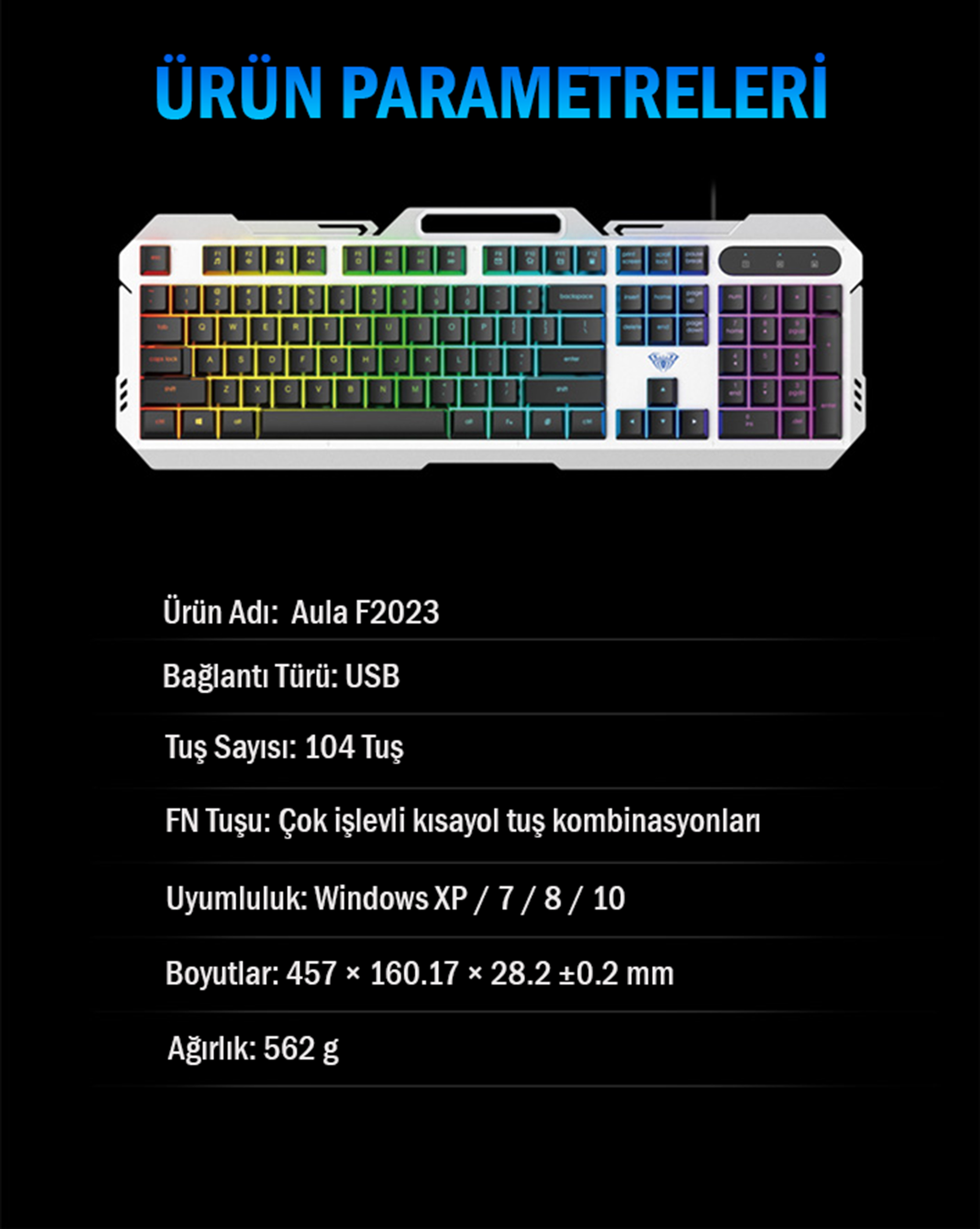 - Arka Aydınlatma: Karışık renkli / Tek renkli