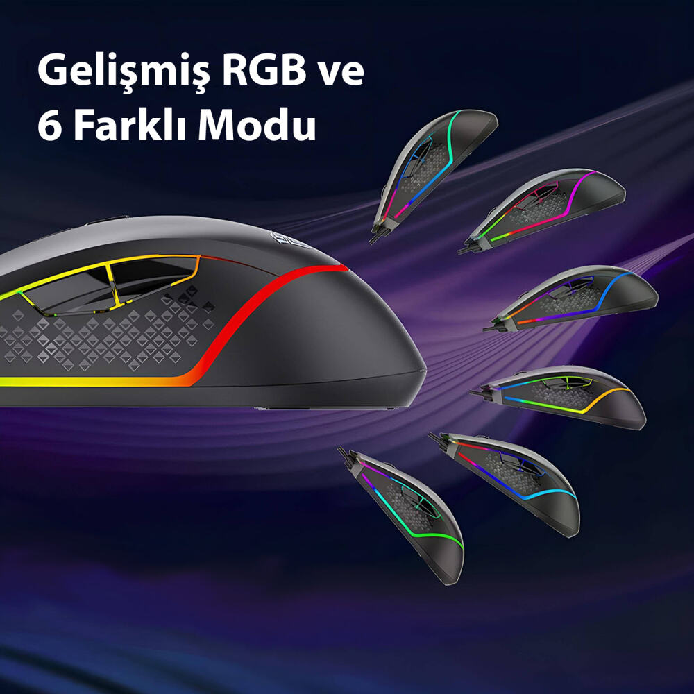 Aula F805 6400DPI RGB 7 Tuşlu Makro Optik Gaming Oyuncu Mouse, şık tasarımı ve konforlu tutuşu ile size en iyi oyun performansını sunar. Üzerinde bulunan DPI kontrol tuşları ile 6 farklı DPI seçeneği arasında döngü olmadan DPI ayarınızı kolayca yaparak kendiniz için en uygun hassasiyeti bulabilirsiniz. Yan kısmında bulunan ileri geri tuşları ile sayfalar arasında kolayca geçiş yaparak zamandan tasarruf edebilirsiniz. Üzerindeki 6 Modlu RGB aydınlatma ile odanızın atmosferine kolayca uyum sağlar. Parmak hizanızda bulunan dokulu yapı daha iyi bir tutuşa sahip olmanız için tasarlanmıştır. Alt kısımda bulunan kaymaz pedler hareketlerinizin daha keskin olmasını sağlar böylece daha iyi bir aim kontrolü ile rekabetçi fps oyunlarında rakiplerinizden önde olursunuz. Optik sensörü bilgisiyaranıza algıladığı hareketleri 125Hz ile aktarır böylece bilgisayarınız hareketlerinize anında tepki verir. Kutu içerisinden çıkan cırt bant ile fazlalık kablonuzu toplayarak kablo karmaşasının önüne geçebilirsiniz. Gelişmiş macro programı yardımı ile mouse üzerindeki 7 tuşuda programlayabilir, macro yazabilir, RGB ayarlarını değişebilir, tepkime süresini ayarlayabilirsiniz veya bunun gibi bir çok özelliği kontrol edebilirsiniz böylece mouse üzerinde tam kontrole sahip olursunuz. Macro programında yaptığınız değişiklikleri 2 farklı profil üzerinde kaydedebilirsiniz. ABS malzemeden üretilen kasası düşme, darbe alma gibi olumsuz durumlara karşı dayanıklıdır.