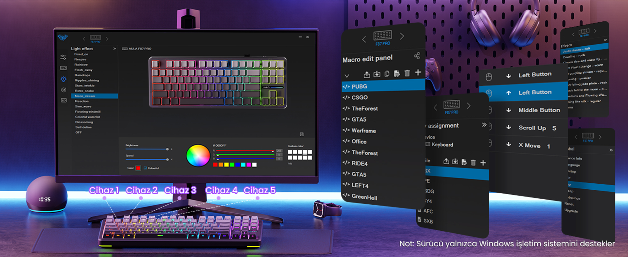 - 1 x Aula F87 PRO Mekanik RGB TKL Matcha Latte Switch Kablosuz Makrolu Hot Swap Klavye Sarı