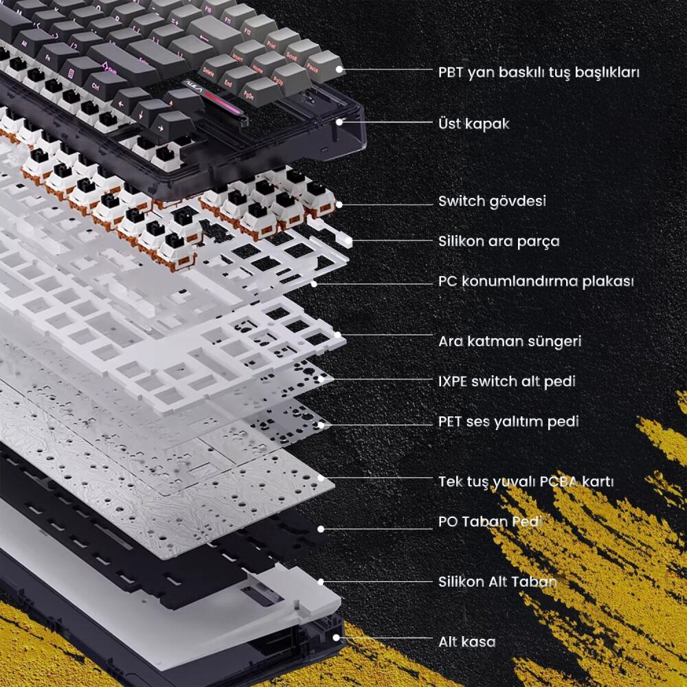 Şık ve modern tasarımı ile dikkat çeken, 87 tuşlu mekanik klavyelerdir. Gasket yapısı ve yumuşak tuş hissi, uzun süreli kullanımlarda bile konfor sağlar. Tuşlar ve mekanik switchler değiştirilebilir yapıda olup, kullanıcılar kendi tercihlerine göre keycap ve switchlerle kişiselleştirme yapabilirler.