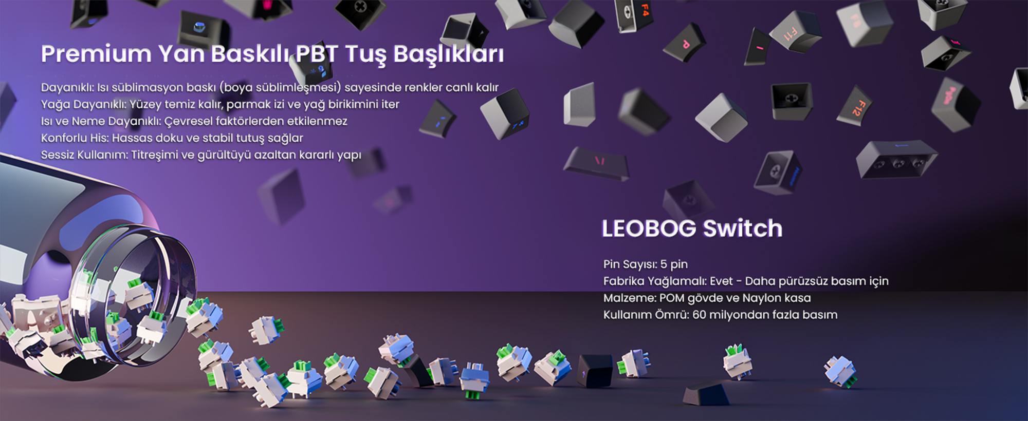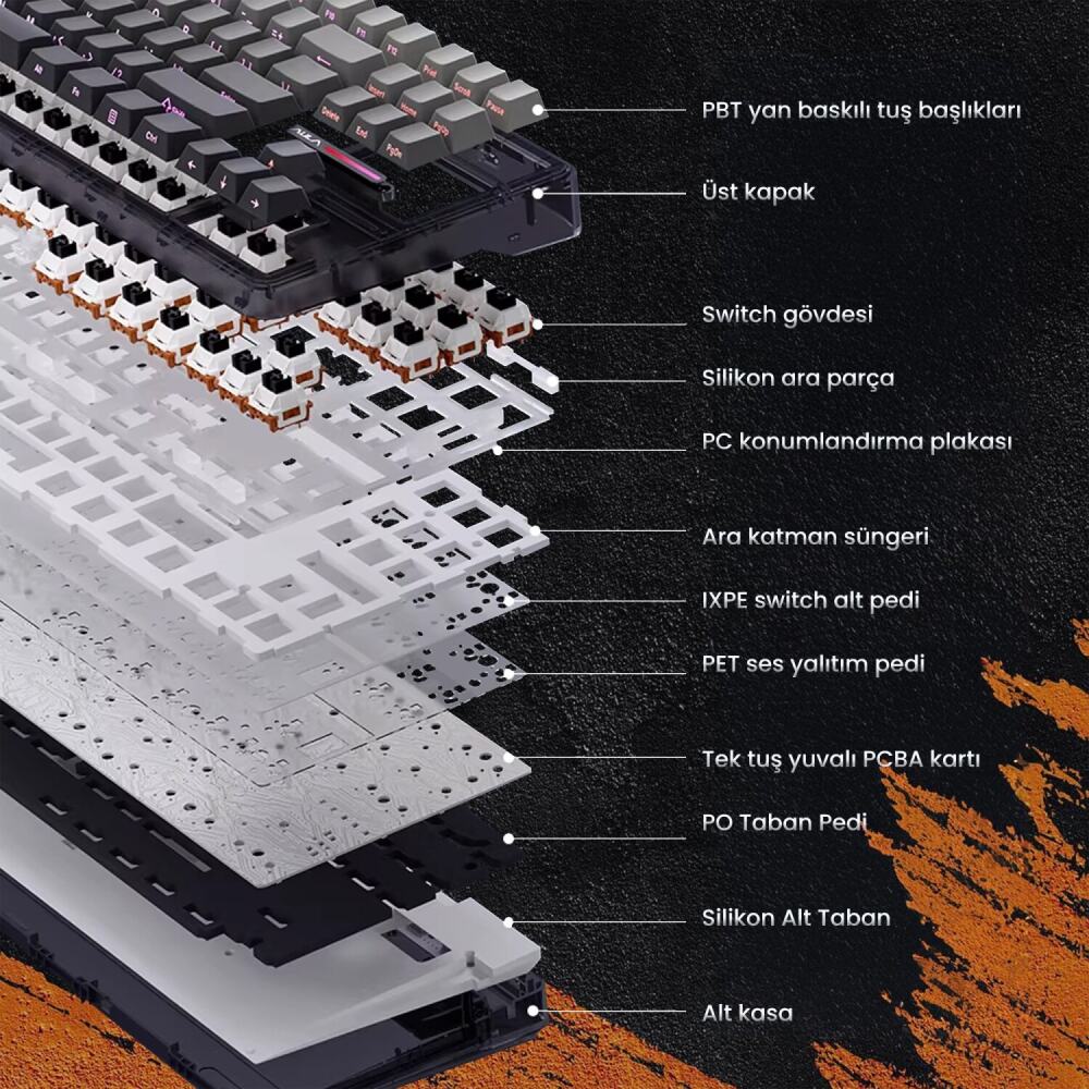 Şık ve modern tasarımı ile dikkat çeken, 87 tuşlu mekanik klavyelerdir. Gasket yapısı ve yumuşak tuş hissi, uzun süreli kullanımlarda bile konfor sağlar. Tuşlar ve mekanik switchler değiştirilebilir yapıda olup, kullanıcılar kendi tercihlerine göre keycap ve switchlerle kişiselleştirme yapabilirler.