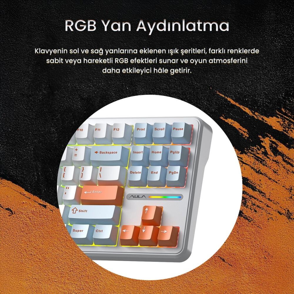 - 1 x Aula F87 PRO Mekanik RGB TKL Nimbus V3 Switch Kablosuz Makrolu Hot Swap Klavye Turuncu
