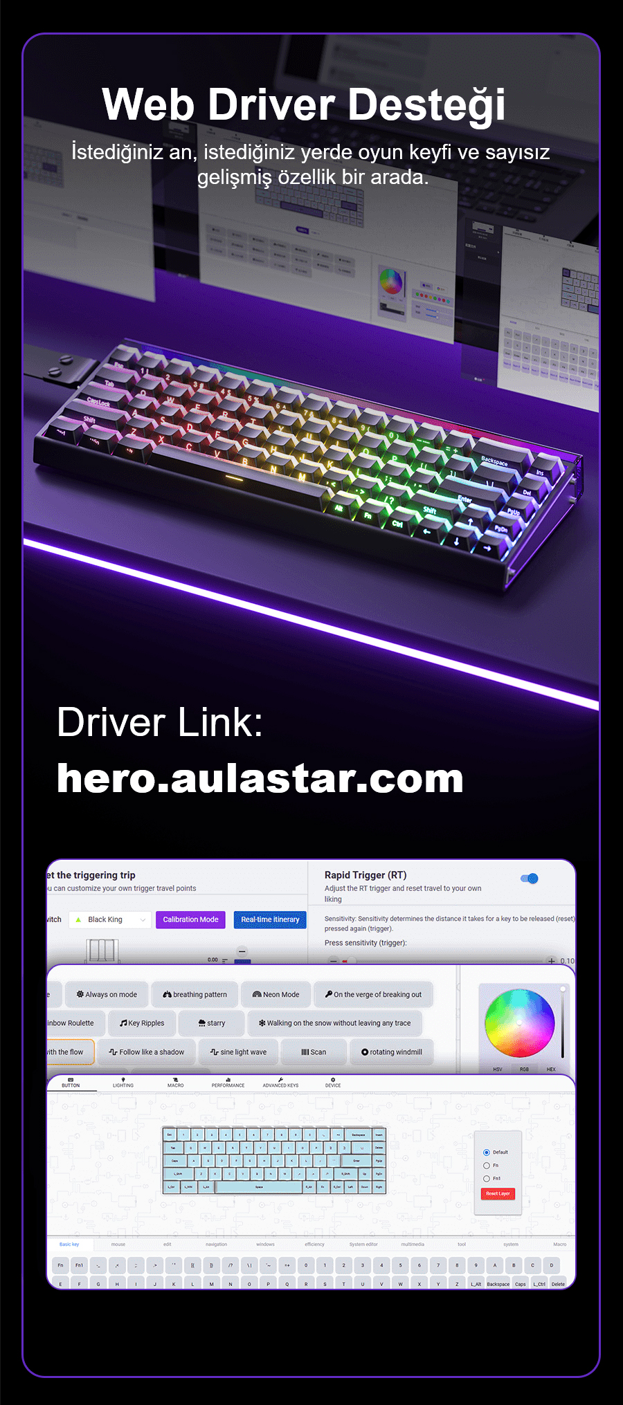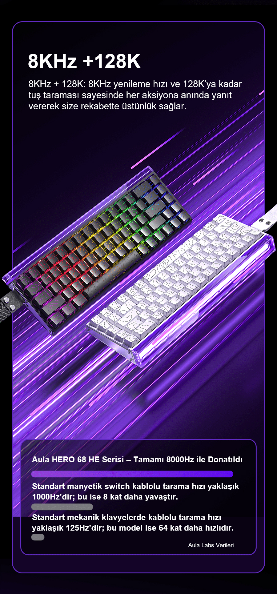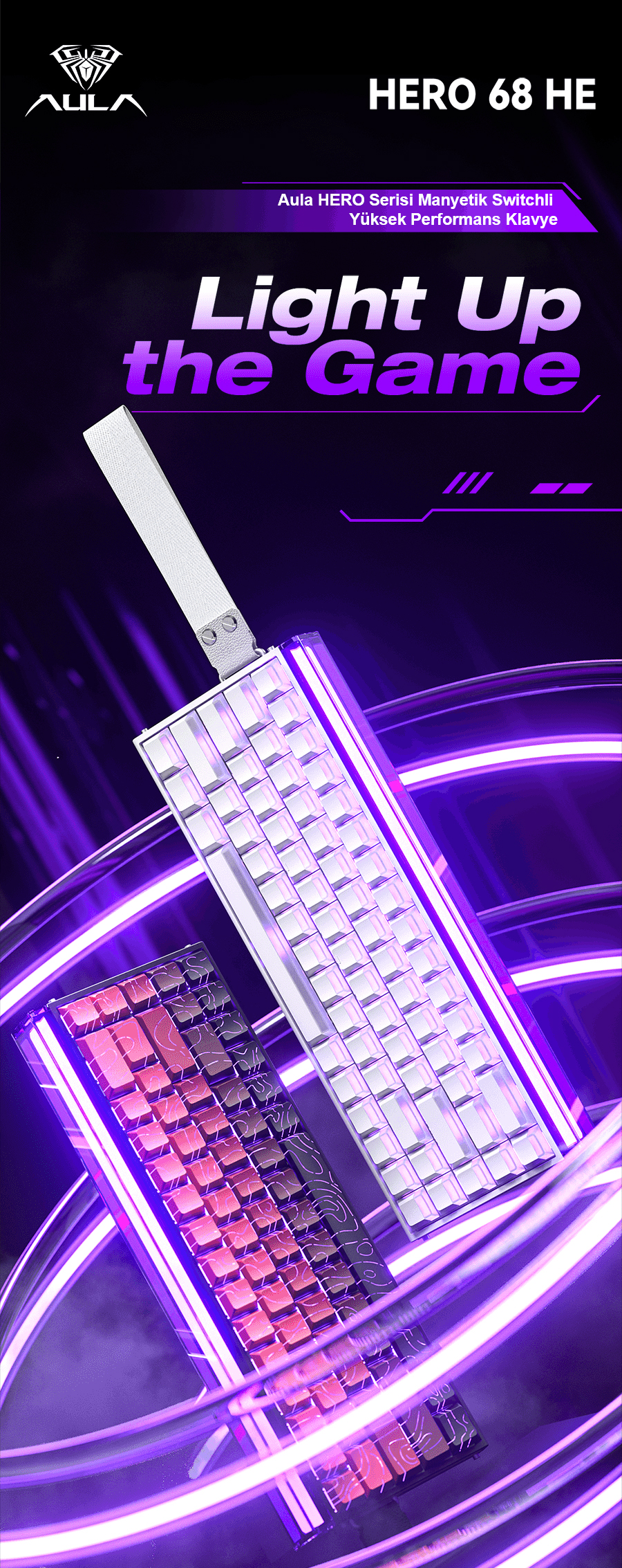 - 1 x Aula Hero68 He Manyetik Klavye Rapid Trigger Jade King Switch 8000Hz RGB Neon TKL Hot Swap Oyuncu Klavyesi Şeffaf Siyah