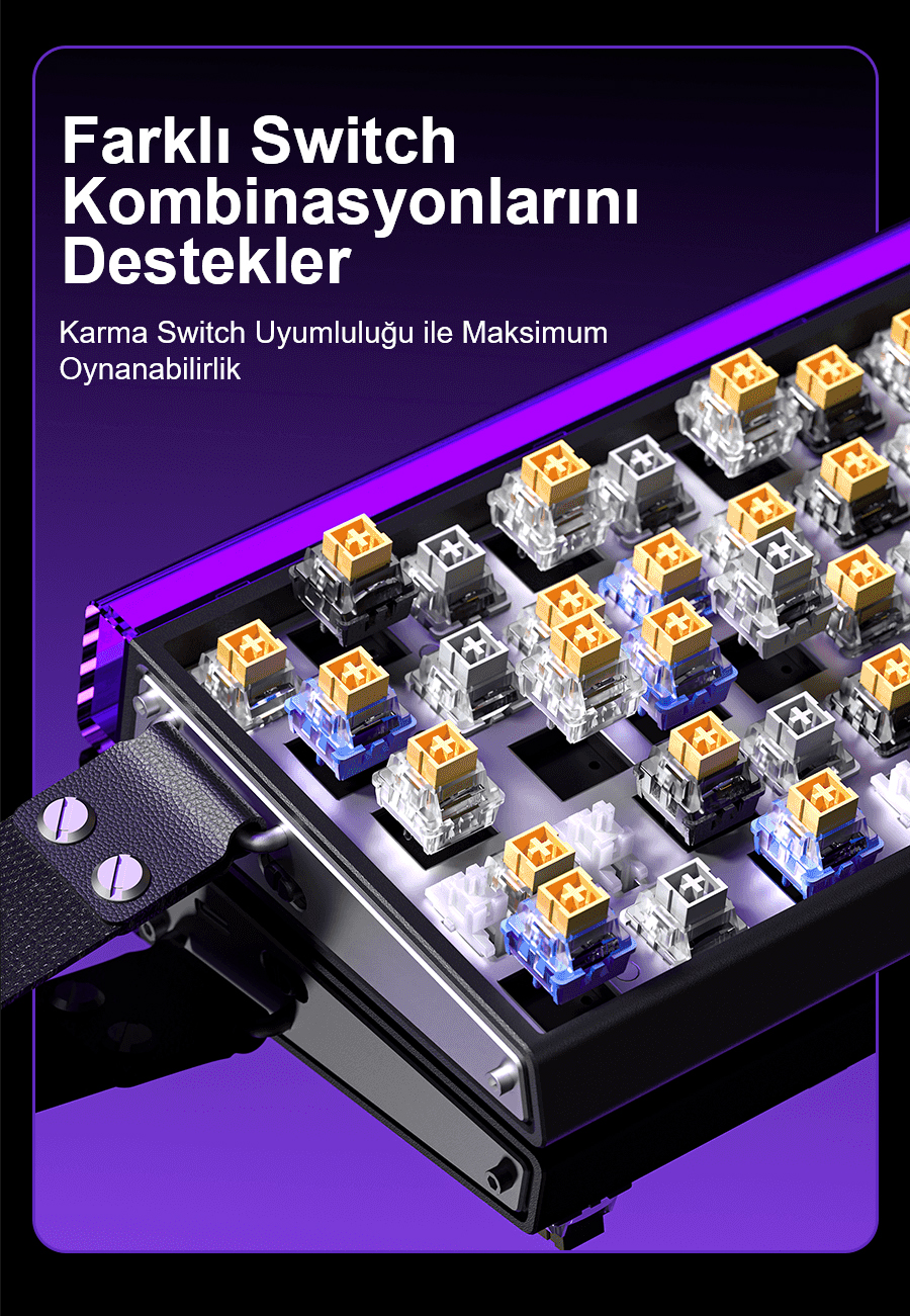 Aula HERO68, yalnızca manyetik switch türleriyle uyumludur. Kutudan çıkan Jade King manyetik switch’lerin yanı sıra, Hot Swap özelliği sayesinde diğer uyumlu manyetik switch’lerle kolayca değiştirilebilir. Geleneksel mekanik switch’lerle uyumluluğu bulunmamaktadır.