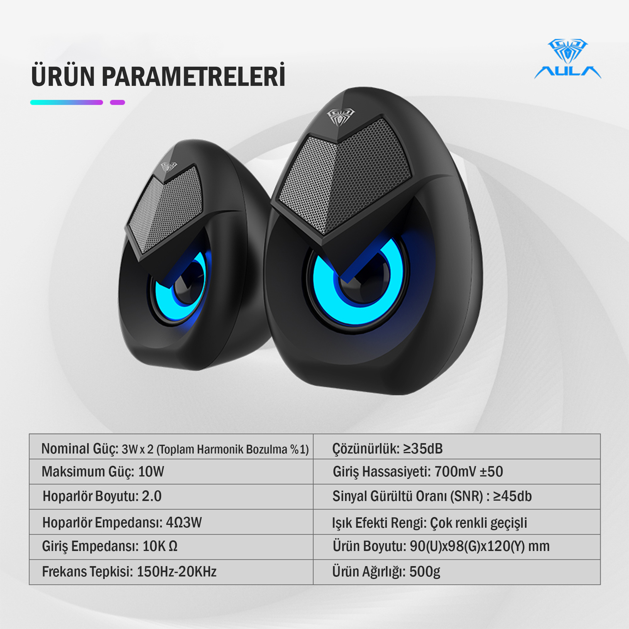 - 1 x Aula N69 1+1 USB / AUX RGB Masaüstü Oyuncu Hoparlör (Çiftli)