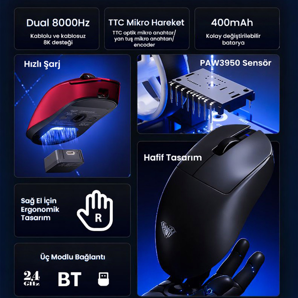 - Bağlantı: Bluetooth / 2.4G / USB