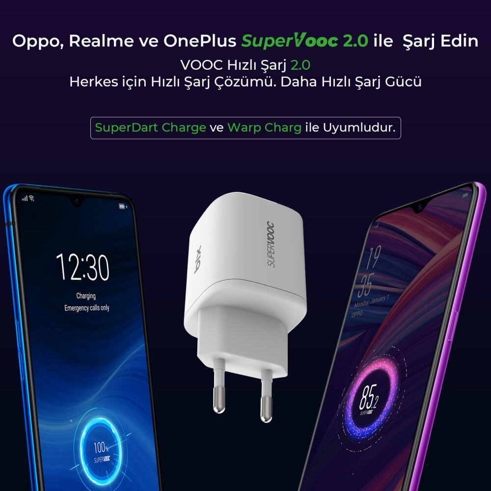 Oppo'nun geliştirmiş olduğu hızlı şarj teknolojisi SuperVooc’u destekler ve bu sayede Oppo Reno 7'yi %0'dan %75'e 30 dakikada ve Find X3 PRO'yu %0'dan %90'ye 30 dakikada şarj edebilirsiniz. Oppo Reno 7/Reno 6/X3/Find X5/Find N/K10 Pro/A96, Realme GT/GT2/GT NEO/Q3/Q5 serisi için maksimum 65W hızlı şarjı destekler. Yerleşik akıllı işleme çipi, SuperVooc, PD, QC ve diğer protokolleri destekleyen telefonları, dizüstü bilgisayarlar ve tabletler gibi çeşitli cihazları şarj etmek için akımı akıllıca ayarlar. SupeDart Charge ve Warp Charge ile uyumludur.