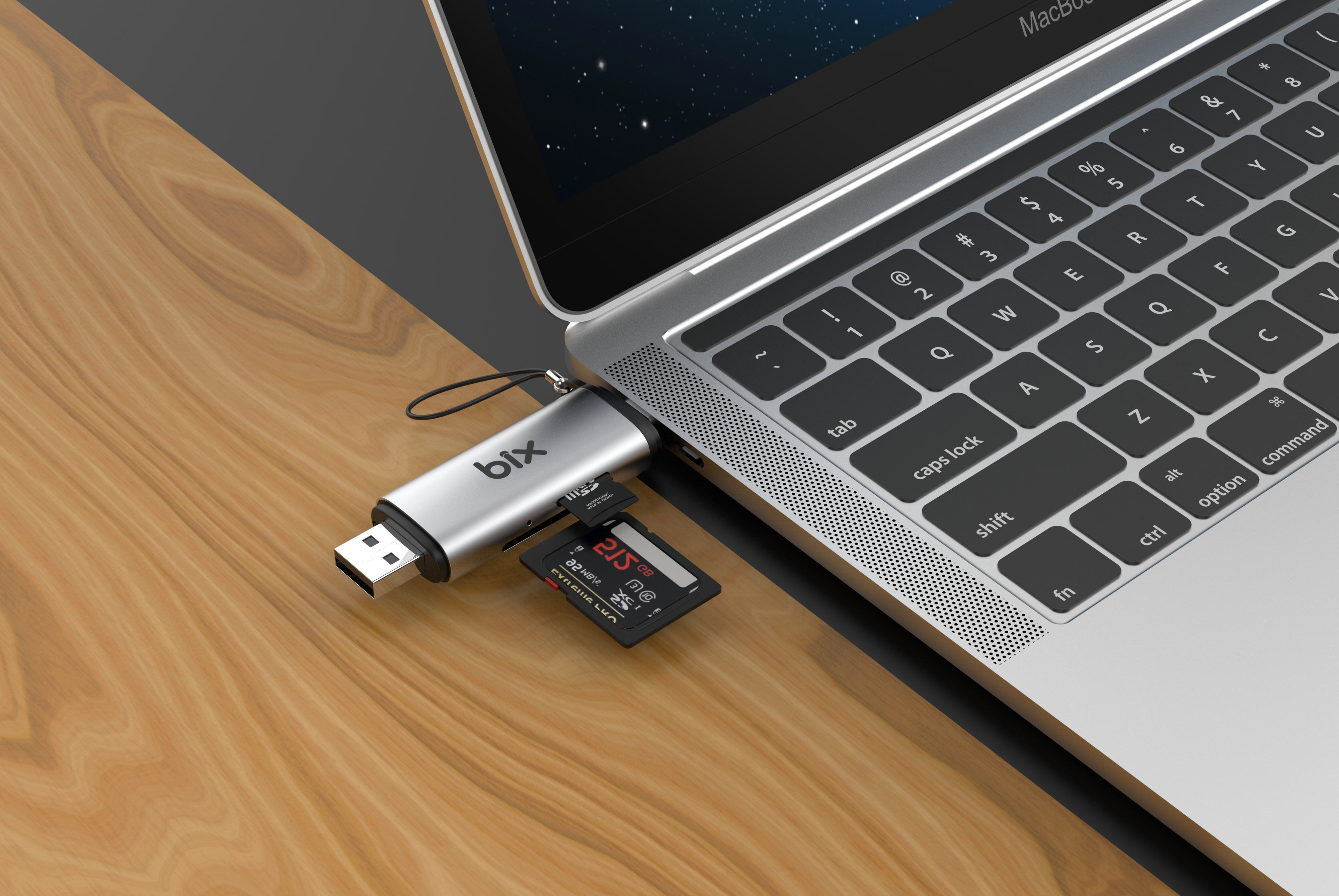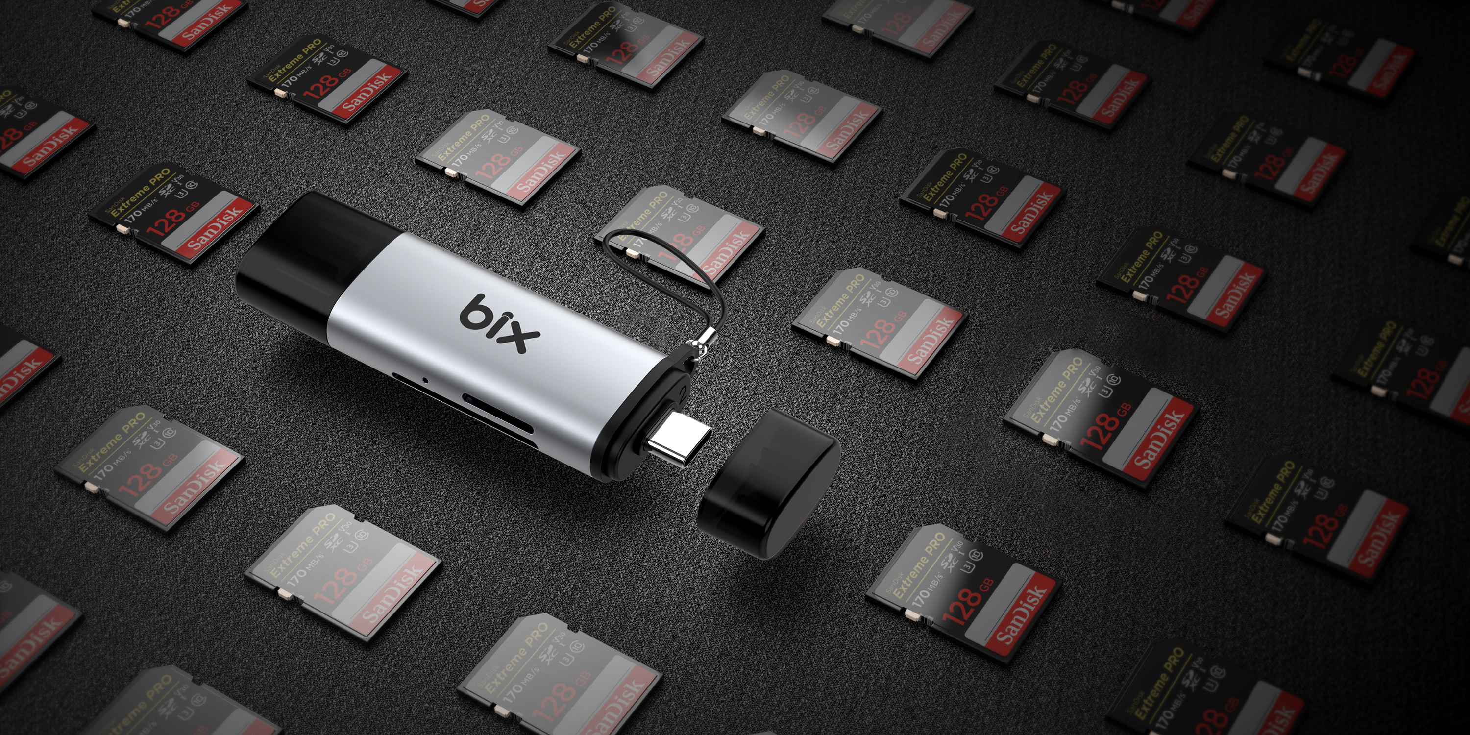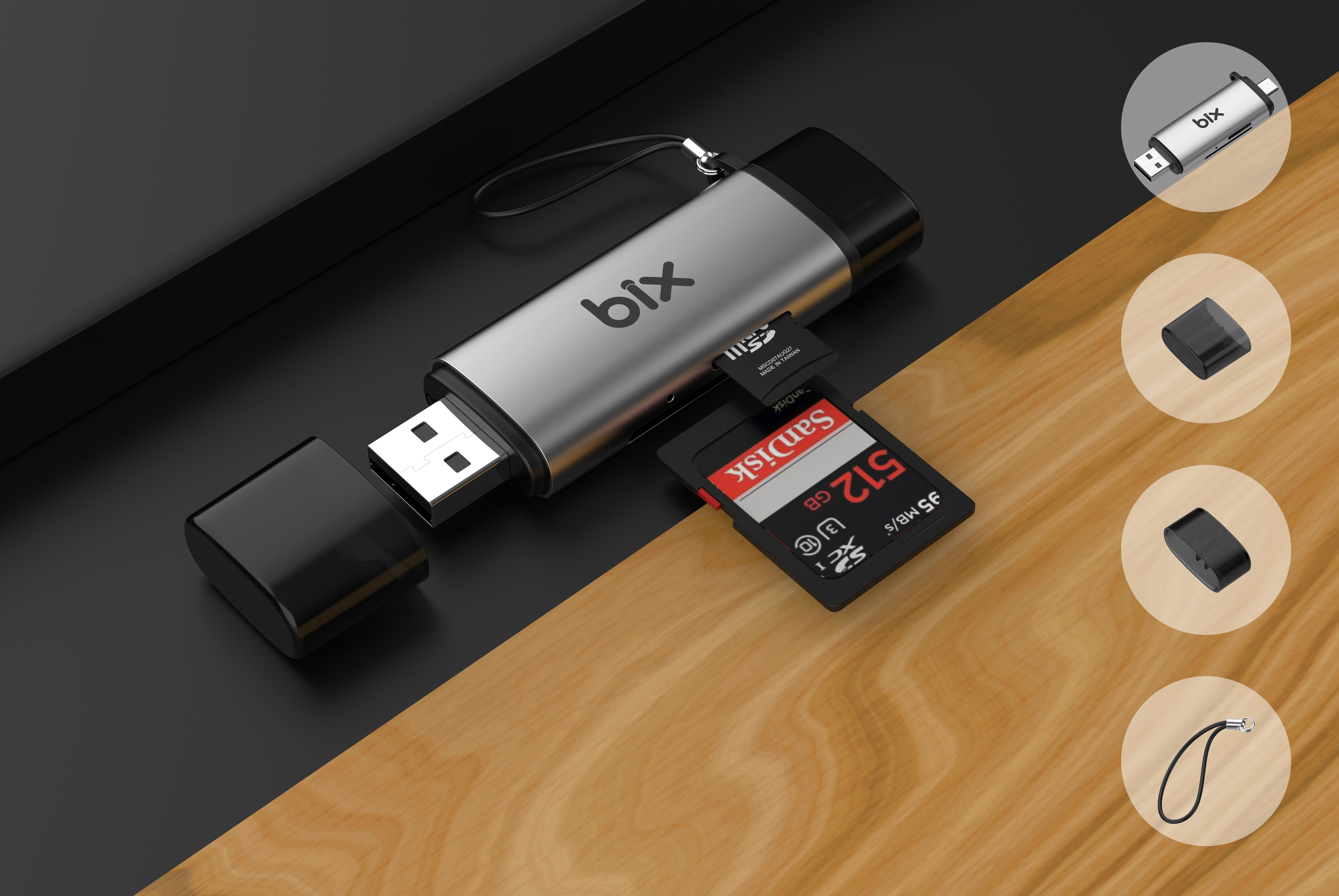 Bix ADP-11 Type-C USB 3.2 Çok Fonksiyonlu OTG Kart Okuyucu kullanarak SD ve TF kartlarınızı akıllı cihazlarınızda veri aktarımına yardımcı olur.