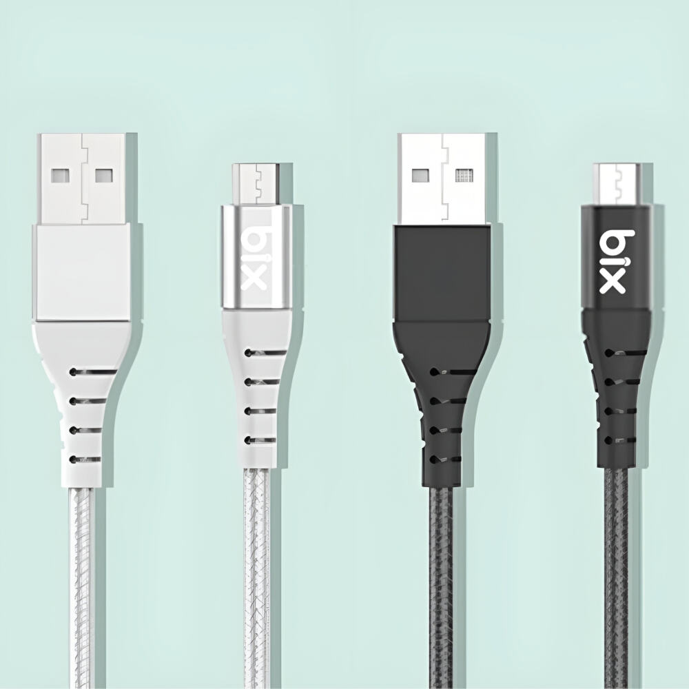 Bix Android İçin Ultra Güçlendirilmiş Micro USB Şarj Kablosu kopma, kırılma ve bükülme durumları için özel olarak üretilmiştir. Aynı anda hem şarj hem de data kablosu işlemi için kullanılabilir. Polyester kaplama bir yapıya sahip olan Bix şarj kablosu 130 dereceye kadar bükülebilen kablo birleşim noktalarına sahiptir.