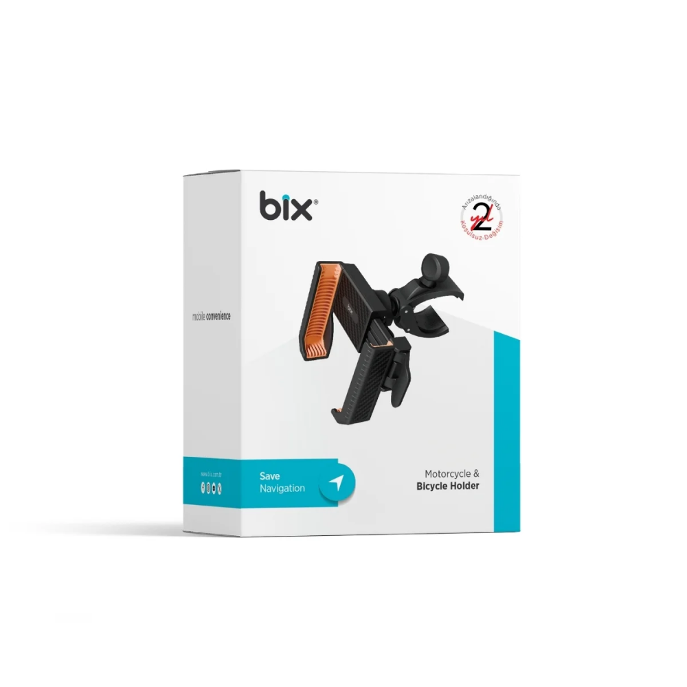 Bix BPH01 Motosiklet & Bisiklet Telefon Tutucu, 360 derece dönebilen yapısı ve geniş uyumluluğu ile sürüşlerinizde maksimum konfor sunar. 4-7.8 inç arası telefonlara ve 15-28 mm gidonlara uyum sağlar. ABS ve silikon malzemeden üretilen sağlam yapısıyla sarsıntılarda bile güvenli kavrama sağlar. Şık, ergonomik ve kolay montajlı tasarımıyla her yolculukta yanınızda!