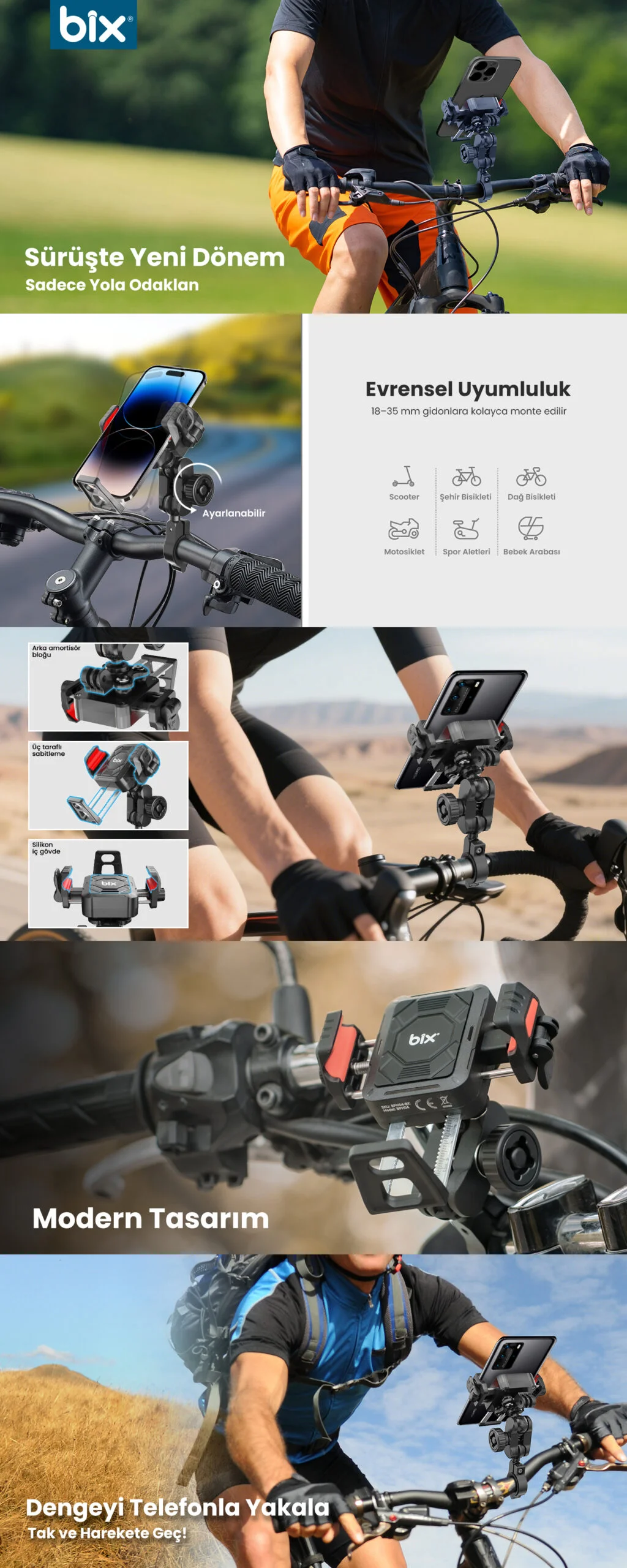 Sürüş keyfinizi maksimum güvenlik ve konforla buluşturan Bix BPH04 gidon telefon tutucu, motosiklet ve bisiklet kullanıcıları için özel olarak tasarlanmıştır. Sağlam yapısı, kolay kurulumu ve her koşula uyum sağlayan esnek yapısıyla dikkat çeker.