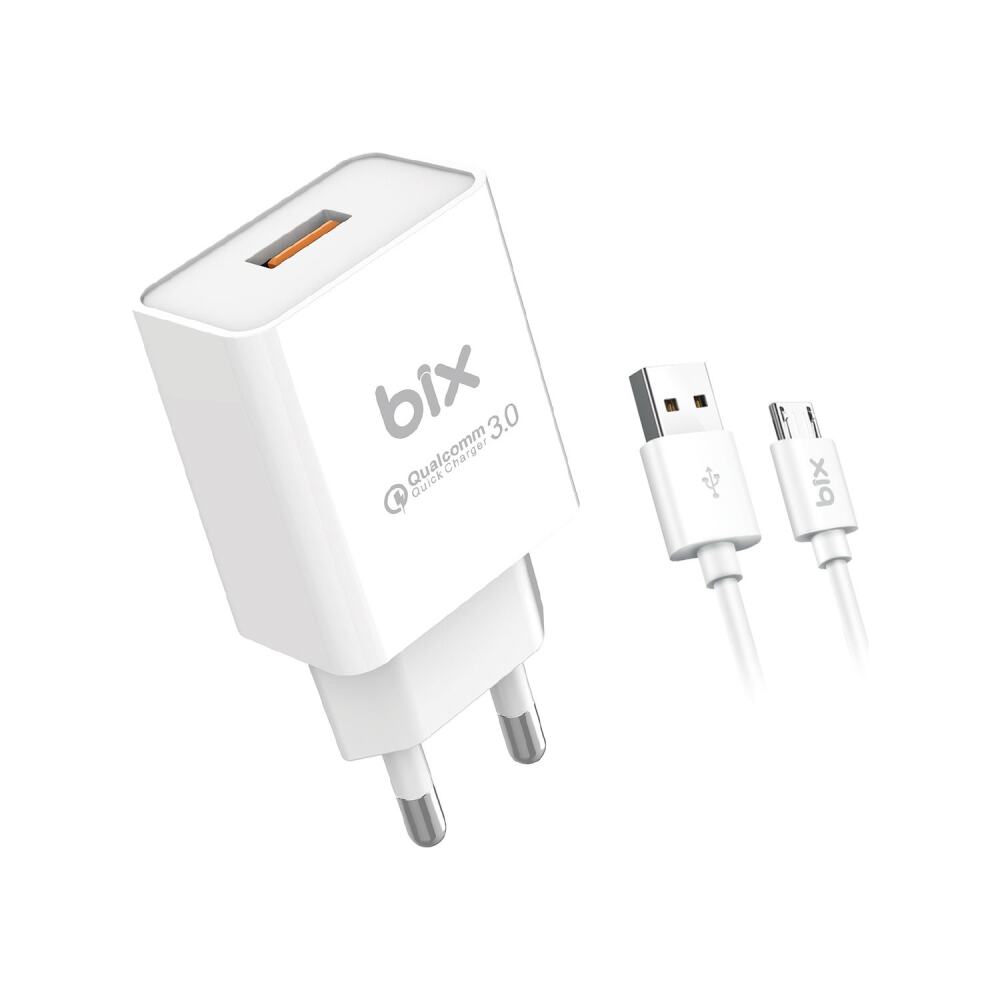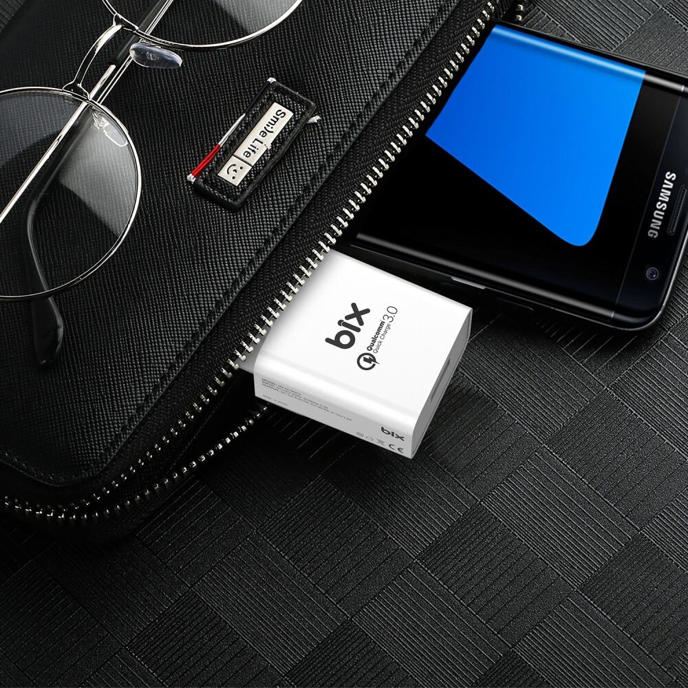 Bix BX-M18QTA 18W Qualcomm 3.0 Hızlı Şarj Adaptörü ve Micro USB Şarj Kablosu 1 Metre, 18W gücüne sahip olan Bix BX-M18QTA ile Micro-USB girişine sahip tüm cihazlarınızı güvenle şarj edebilirsiniz. Qualcomm 3.0 teknolojisi ile hızlı bir şarj deneyimi sizleri bekliyor. Kolay taşınabilir kompakt tasarımı sayesinde mobil cihazınızı dilediğiniz yerde şarj edebilirsiniz. Akım koruma özelliği güvenli bir şarj deneyimi sunarken akıllı çipi ile tüm cihazlarla uyumluluk sağlar.