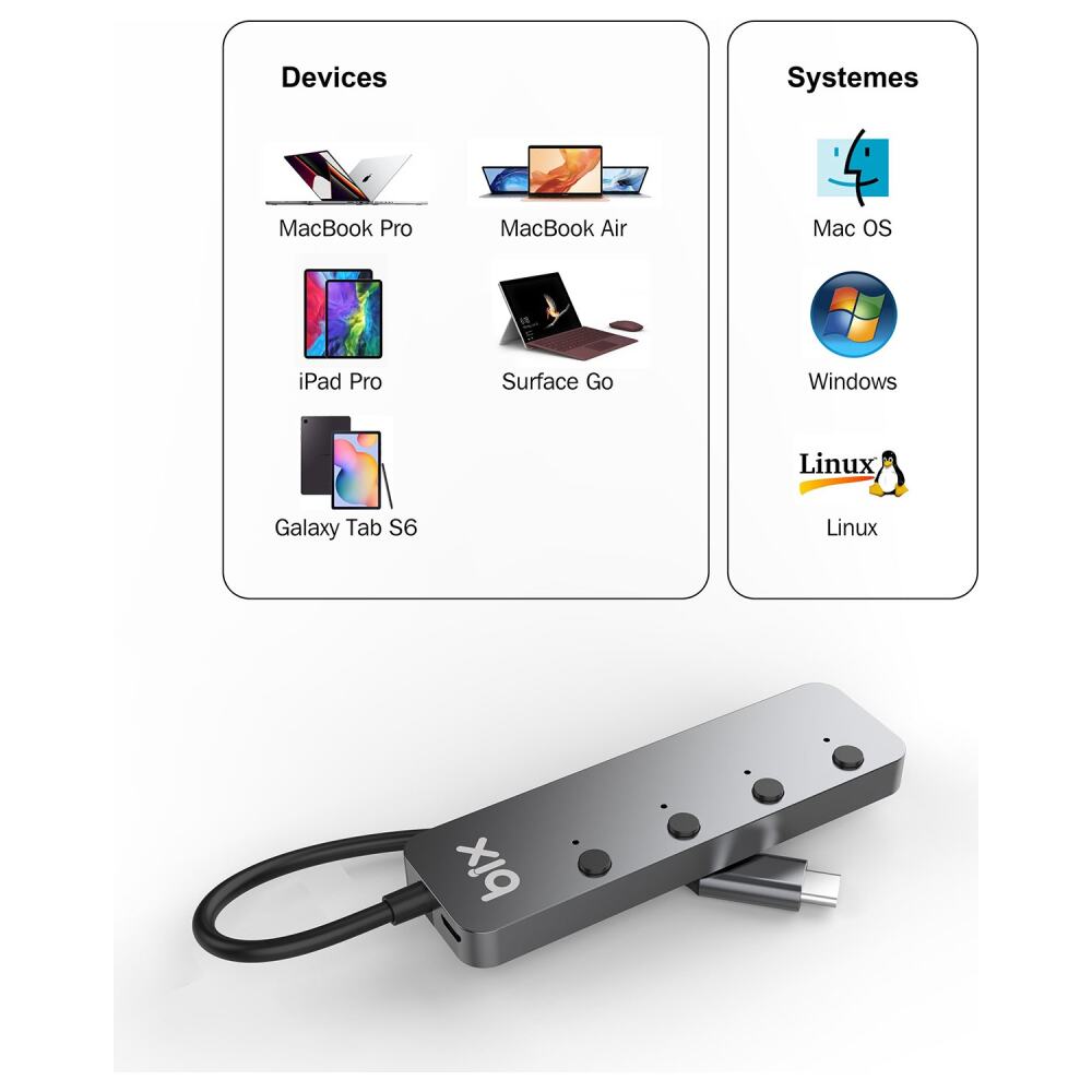 Bix BX20HB Type-C to 4 Port USB 3.2 Hub Çoklayıcı ile Type-C bağlantı noktalarına sahip en yeni nesil bilgisayarlar ve akıllı cihazlarla çalışmak üzere tasarlanmıştır. Klavye, fare, dijital kamera, akıllı elefon, USB flash sürücü, harici HDD vb. gibi tüm USB cihazlarınızı aynı anda bağlayabilirsiniz. Birinci sınıf alüminyum dış yüzeyi ve kompakt tasarımıyla BX20HB, yeni MacBook cihazınızla mükemmel bir uyum sağlamaktadır. 4 adet 3.2 USB portu sayesinde artık eski USB 2.0/1.1 standartlarından 10 kata kadar daha hızlı veri aktarabilirsiniz.