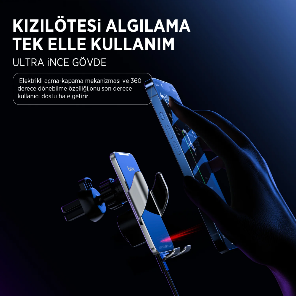 Bix BXCH9 MagSafe 15W Kablosuz Hızlı Şarj Destekli Ultra İnce Metal Gövdeli 360 Derece Ayarlanabilen Araç içi Telefon Tutucu, hem MagSafe uyumluluğu hem de 15W hızlı şarj desteğiyle sürüş sırasında telefonlarınızı şarj etmek ve sabit tutmak için mükemmel bir çözüm sunar. Yeni nesil 15W hızlı şarj teknolojisiyle donatılmış bu kablosuz şarj cihazı, hem performansı hem de şıklığıyla dikkat çekmektedir. Ultra ince metal gövdesi, zarif tasarımı ve yüksek dayanıklılığı bir araya getirir.