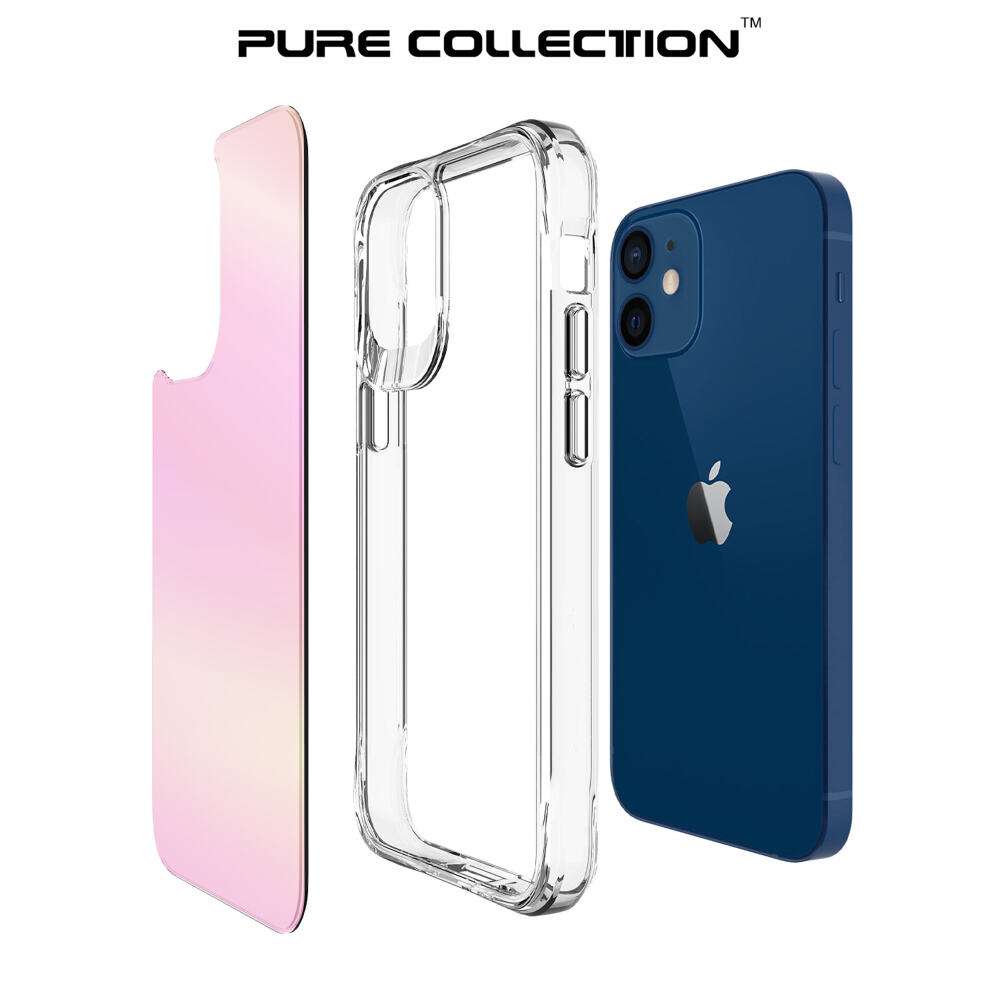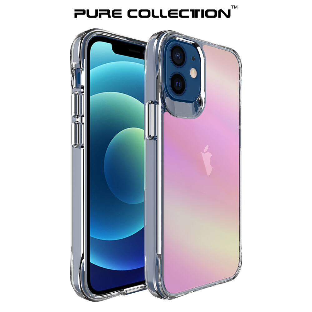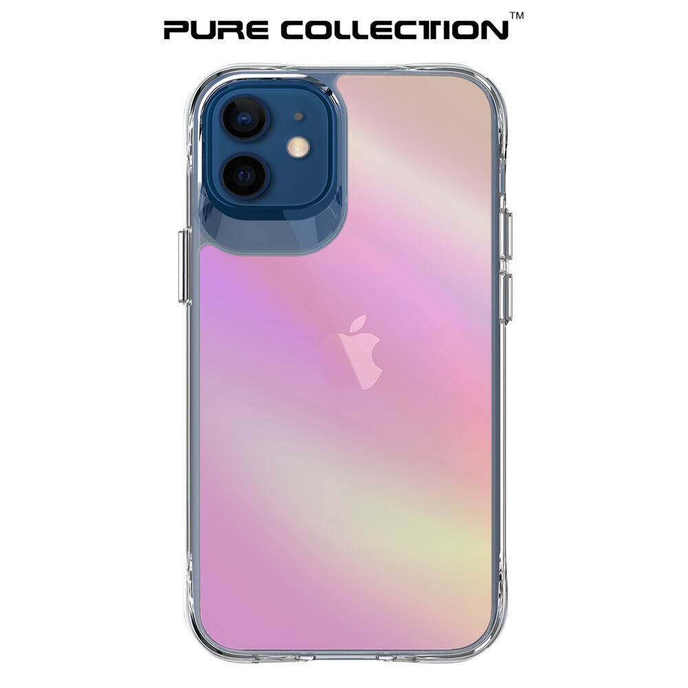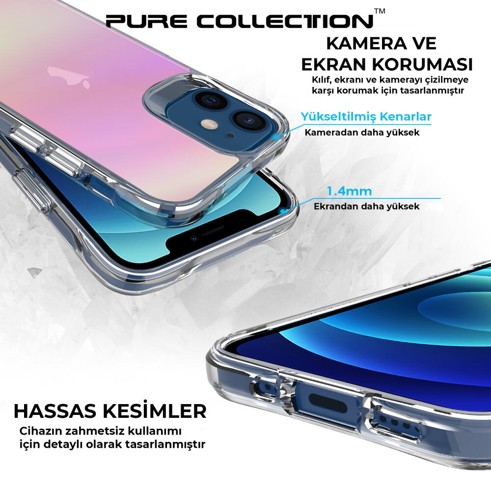 Bix iPhone 12 Pure Rainbow Renk Geçişli Şeffaf Kılıf Çizilmeye Dayanıklı Darbe Emici Parmak İzi Önleyici Pembe