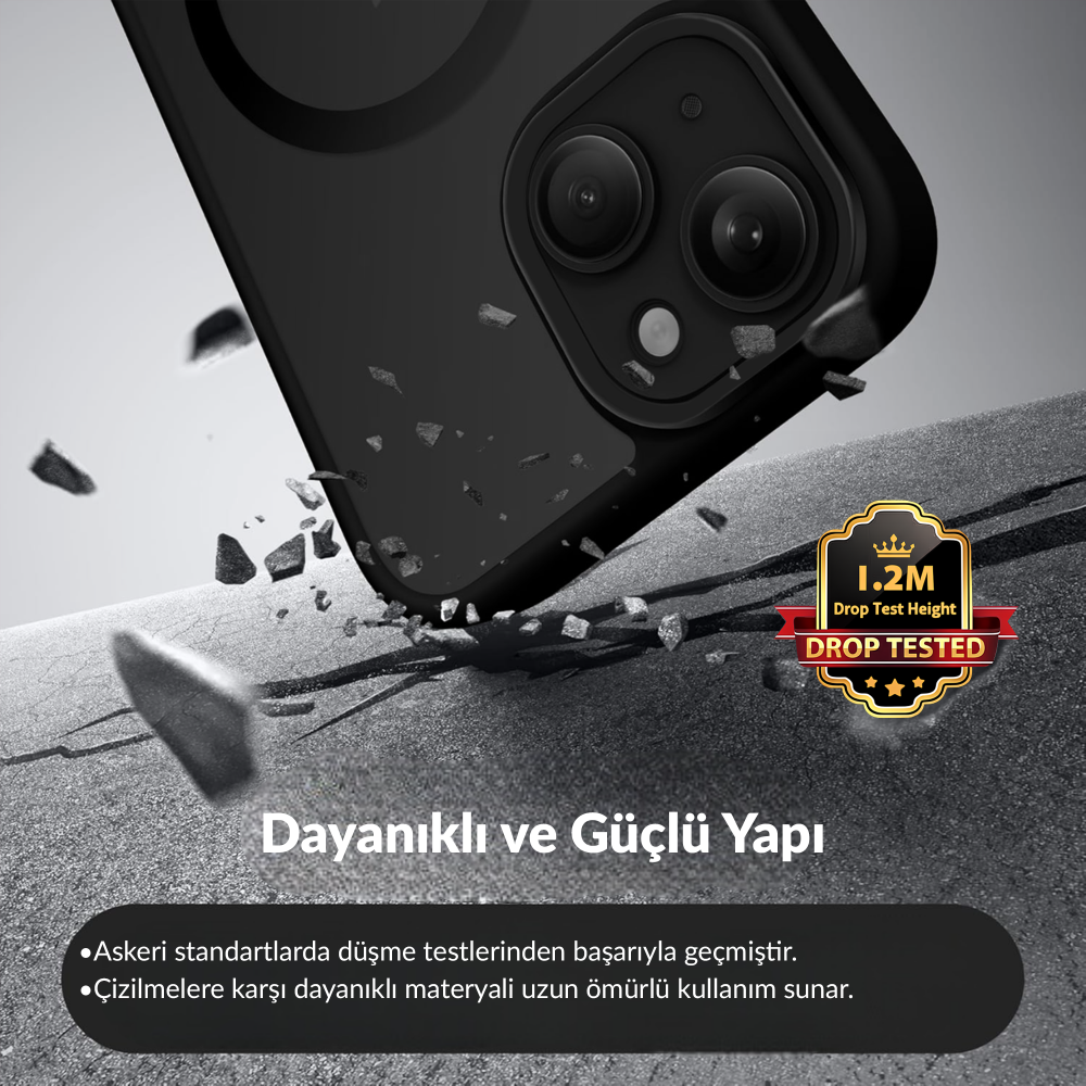 - MagSafe uyumlu manyetik yapı ile kablosuz şarj cihazları ve aksesuarlarla tam entegrasyon sağlar. Kılıfınızı çıkarmadan hızlı ve kolay şarj imkanı sunar