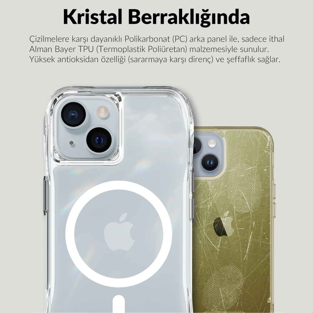 Kristal Netlikte Koruma: Alman Bayer teknolojisiyle üretilen şeffaf kılıf, telefonunuzun orijinal tasarımını korurken, anti-oksidasyon özelliği sayesinde sararma yapmaz. Askeri standartlara uygun düşme testlerinden başarıyla geçmiş, dayanıklı bir yapıya sahiptir.