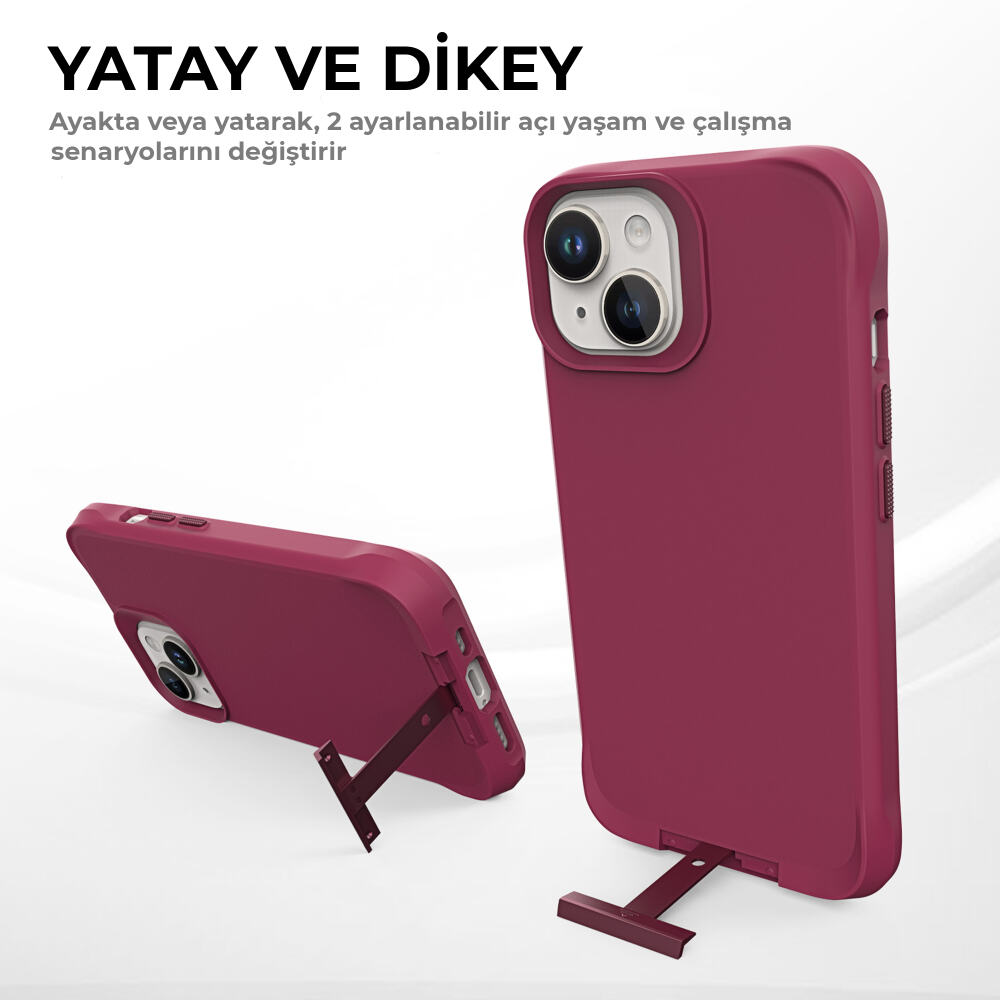 Kılıfın altından çıkan küçük ayak sayesinde telefonunuzu iki farklı açıda kullanabilirsiniz. Yatay (horizon) ve dikey (vertical) pozisyonlarda telefonunuzu stand modunda sabitleyerek video izlerken, görüntülü konuşurken veya çalışırken benzersiz bir konfor deneyimi yaşarsınız.