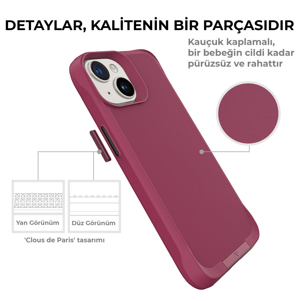 Bix iPhone 14 Plus / 15 Plus Vortex MagSafe Kılıf Stand Özellikli 3X Korumalı Mikro Fiber İç Yüzey Kırmızı