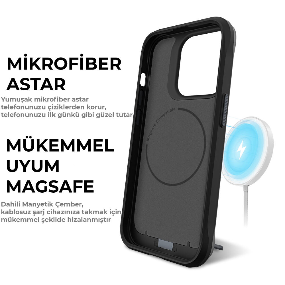 Bix Vortex MagSafe, kablosuz şarj cihazlarıyla tam uyum sağlar. Telefonunuzu kılıftan çıkarmadan MagSafe şarj cihazıyla kolayca şarj edebilirsiniz. Hem zaman kazandırır hem de pratik bir kullanım sunar.
