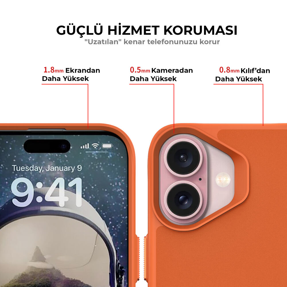 Kılıf, yükseltilmiş kenar tasarımı ile kamera ve ekranı düşmelere ve yüzeyle temas kaynaklı çizilmelere karşı korur. Telefonunuzun en hassas bölgeleri her zaman güvende kalır.