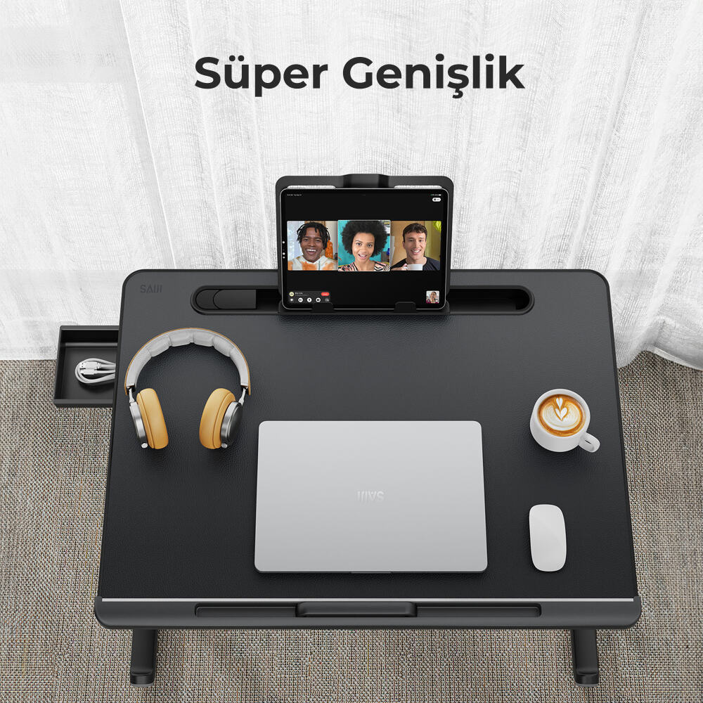 - Çok Fonksiyonlu Donanım: Çekmece, tablet yuvası ve kitap standı gibi özelliklerle ihtiyaçlarınızı tek bir üründe toplar.