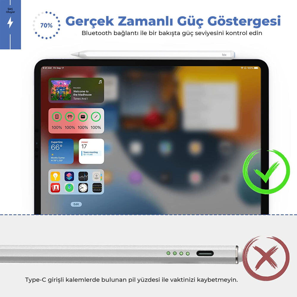 - 1x Bix SP01 Apple iPad Mini/Pro/Air Tablet Uyumlu Dokunmatik Bluetooth Stylus Yazı ve Çizim Kalemi