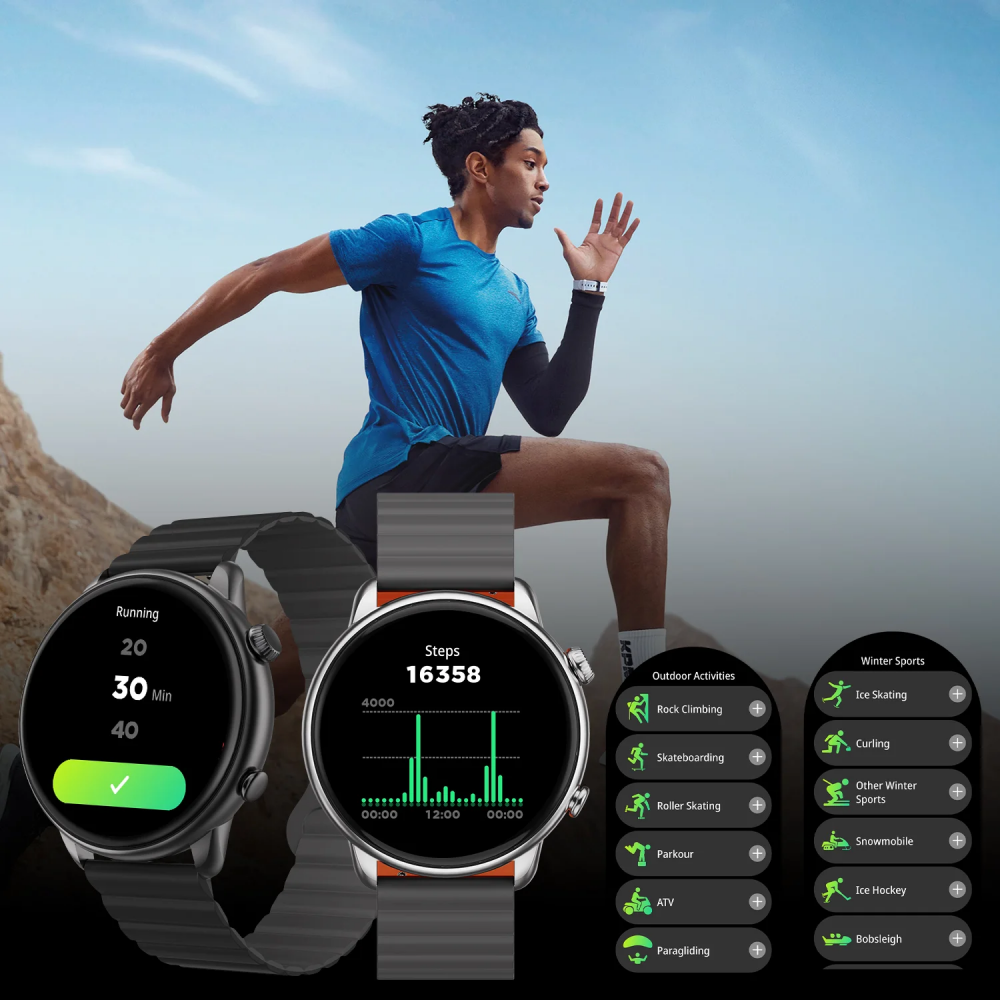 - Şık Tasarım ve Dayanıklılık: 1.43 inç AMOLED ekranı, ince detayları ve hafif yapısıyla saat, hem şık hem de kullanışlı bir aksesuar. IP68 su geçirmezlik sertifikasına sahip olması ise dayanıklılığını kanıtlıyor.