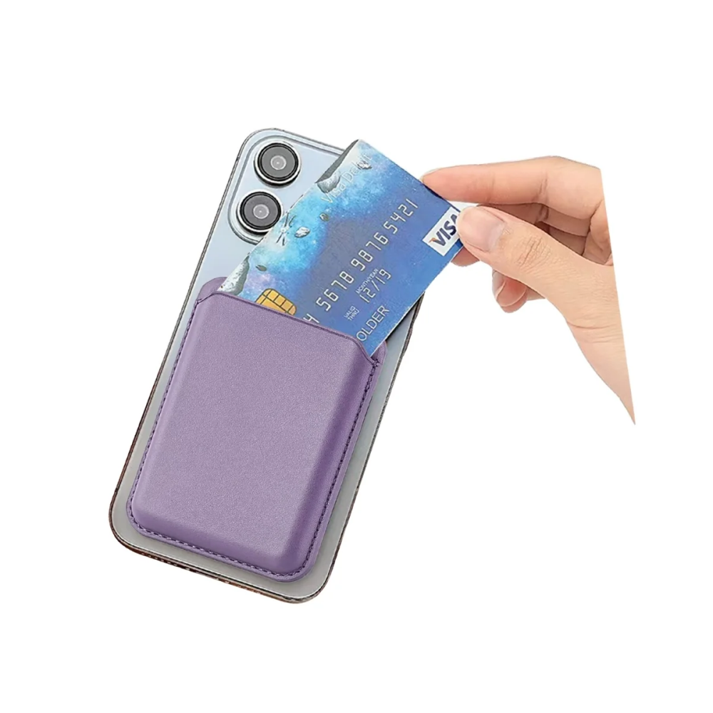 Vegan deri kaplamasıyla şık bir görünüme sahip olan cüzdan, aynı zamanda güçlü manyetik yapısı sayesinde telefonunuza güvenli bir şekilde tutunur.