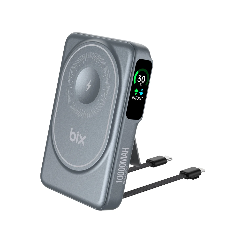 Bix TPB16 6’sı 1 Arada Kablosuz Powerbank, yenilikçi özellikleri ve kullanıcı dostu tasarımıyla şarj etme alışkanlıklarınıza yeni bir boyut kazandırıyor. İster evde ister seyahatte olun, TPB16 ile enerji asla tükenmez. Yalnızca 109 x 71 x 21.4 mm boyutlarıyla son derece taşınabilir bir tasarıma sahiptir ve bu kompakt yapı, onu günlük kullanım için mükemmel bir seçim haline getirir. Gerçek zamanlı OLED ekranı sayesinde pil seviyesini ve şarj durumunu kolayca takip etmenizi sağlar. Üstelik telefon standı olarak kullanılabilen ergonomik yapısıyla pratiklik sunar. Sıra dışı tasarımıyla şarj dünyasında öne çıkan bu cihaz, ince ve zarif tasarımıyla, modern yaşam tarzınıza mükemmel şekilde uyum sağlar.