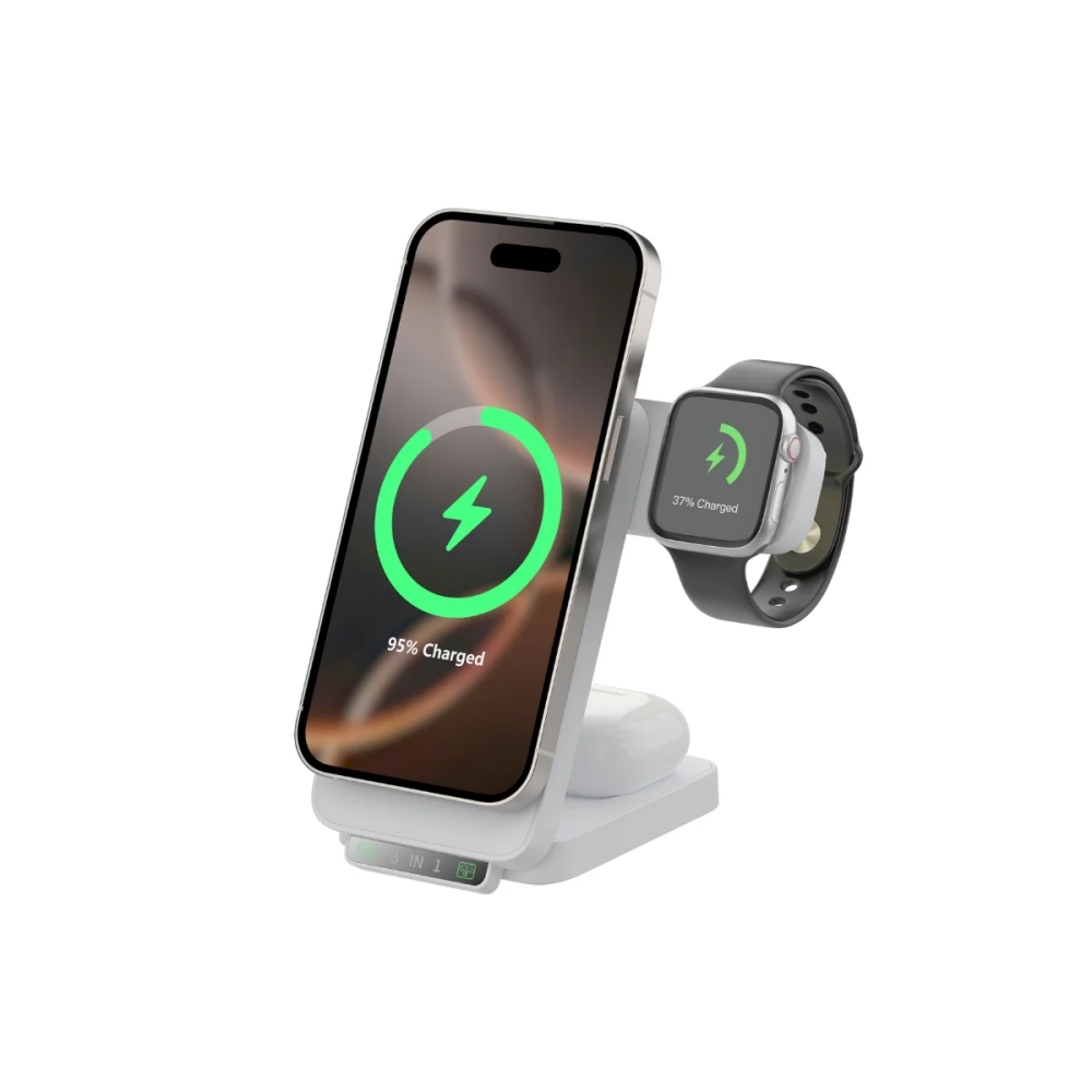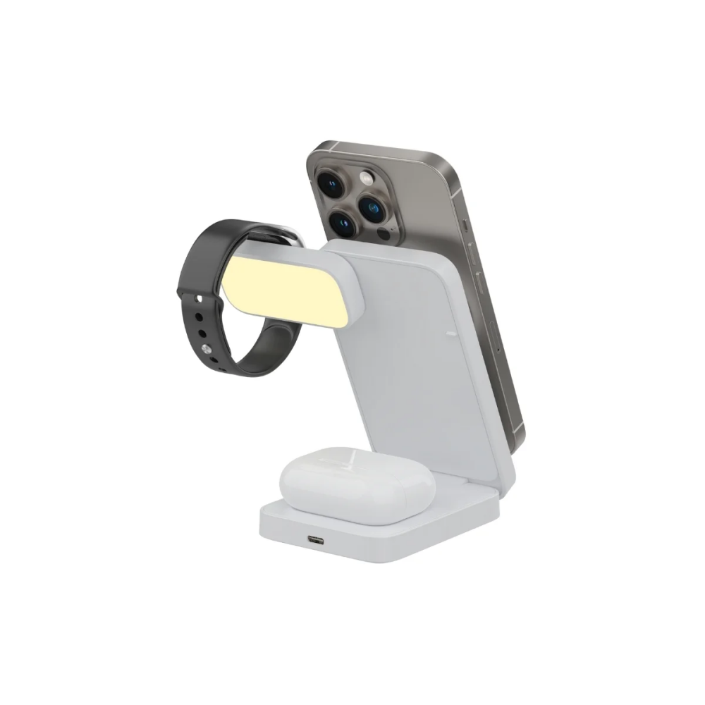Bix TPS01, telefon, akıllı saat ve TWS kulaklık gibi birden fazla cihazı aynı anda kablosuz olarak şarj edebileceğiniz çok fonksiyonlu bir şarj istasyonudur. Günümüzün karmaşık şarj ihtiyaçlarına mükemmel bir çözüm sunarak masanızda veya komodininizde kablo dağınıklığını ortadan kaldırır. Qi sertifikalı kablosuz şarj teknolojisi sayesinde, telefonunuzu ve diğer cihazlarınızı pratik, güvenli ve hızlı bir şekilde şarj edebilirsiniz.