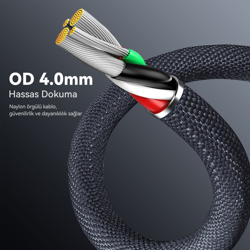 Naylon örgülü kablo, güvenilir performans ve daha uzun ömürlü bir kullanım sağlar. Premium yumuşak dokunuşlu malzemeyle ile kaplanmıştır ve 5000’den fazla bükülmeye test edilmiş olup, 4 kat daha uzun ömürlü olma özelliği sunar. 1 metre uzunluğu sayesinde yatak odasında, koltukta, kütüphanede, ofiste hatta arabanın arka koltuğunda şarj ederken keyif alabilirsiniz.