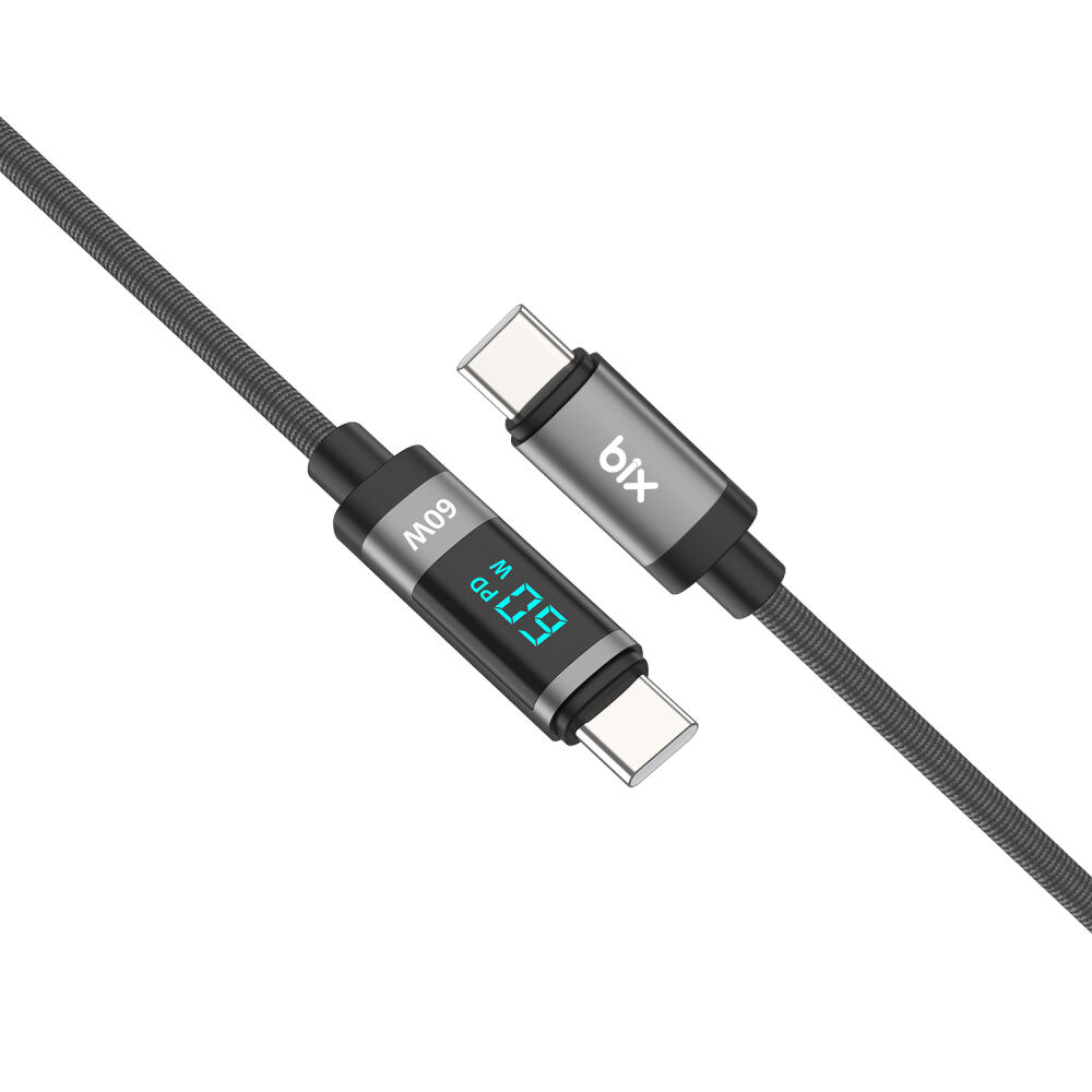 Bix BX06CC Type-C to Type-C 60W Örgülü LED Dijital Ekranlı Şarj ve Data Kablosu, LED göstergesi ile şık bir tasarıma sahiptir ve geliştirilmiş akıllı şarj teknolojisini kullanır. Bu sayede mobil cihazınızın aşırı şarj olmasını önler, sabit bir akım sağlar ve pil ömrünü uzun tutmaya yardımcı olur. Çinko alaşım uç kısımları, örgülü kablo yapısı ile 5000 bükme testine dayanıklıdır. Kablo üzerinde bulunan dijital led gösterge sayesinde cihazınızın şarj edildiği sıradaki dolum gücünü rahatlıkla kontrol edebilirsiniz. Yeni nesil PD şarj adaptörleriniz ile Type-C kablosunu birlikte kullanarak telefon ve tabletlerinizi sıradan şarj kablolarına göre daha hızlı şarj edebilirsiniz. Maksimum 20V 3A güç çıkışı ile şarj süresinden daha verimli bir şekilde tasarruf sağlar. Yüksek hızlı senkronizasyonu sayesinde Type-C cihazlar arasında 3 ampere kadar akım iletir ve 480 Mbps hızında veri aktarım hızına sahiptir.