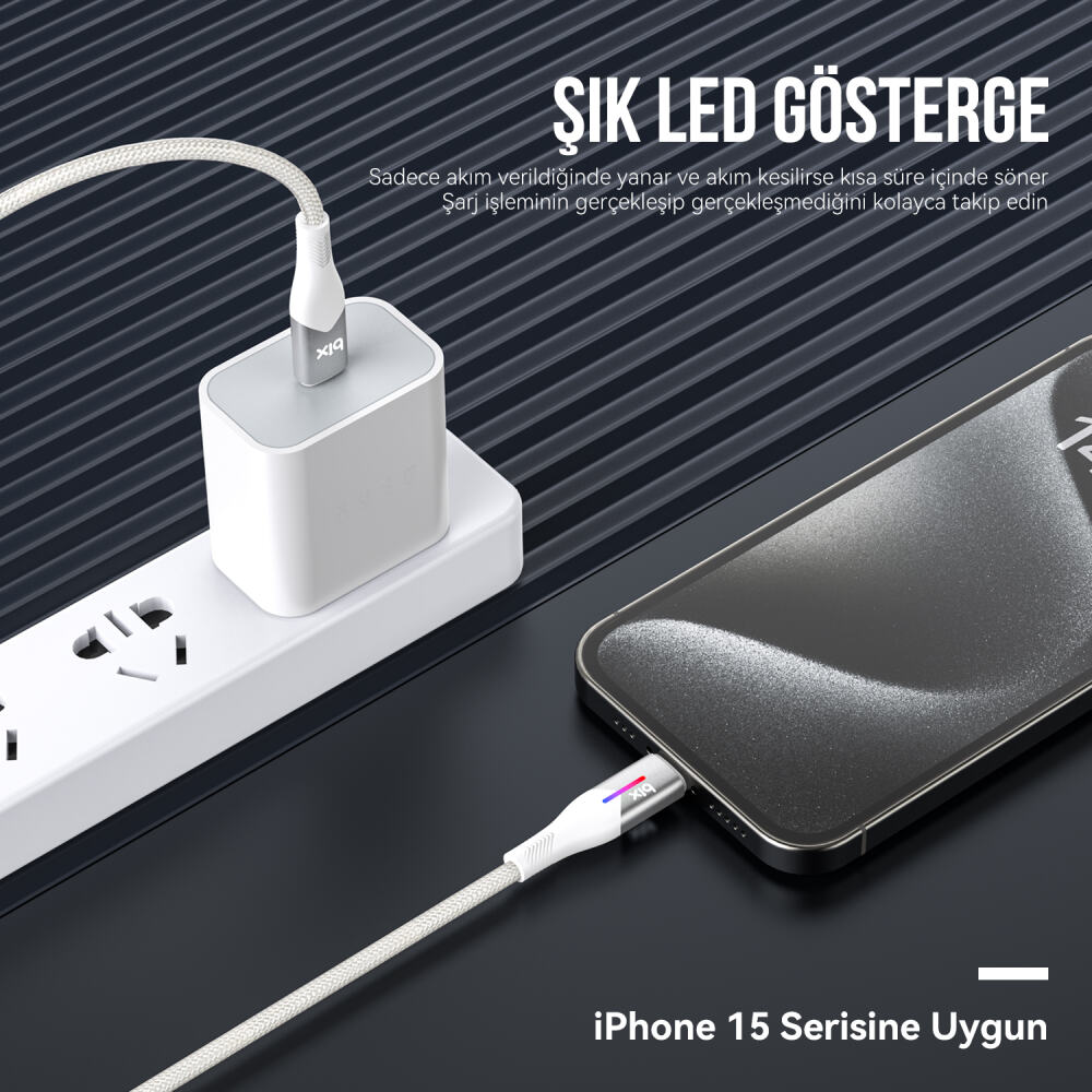 Bix BX05CC, karanlıkta kablonun yerinin tespit edilebilmesi için bir LED göstergesine sahiptir. Bu gösterge sadece akım verildiğinde yanar ve akım kesilirse çok kısa süre içerisinde söner. Böylece şarj işleminin gerçekleşip gerçekleşmediğini kolayca takip edebilirsiniz. Direncinin düşük olması nedeniyle ısınmaz ve şarj sırasında sizin ve telefonunuzun güvenliğini sağlar. Kablonun iki tarafa bağlı verileri senkronize eder, şarj eder ve aktarır.