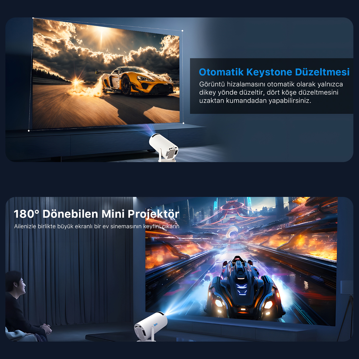 1080p ve 4K çözünürlükte içerikleri destekleyerek, en yüksek kalitede video oynatma imkanı sunar. 4K çözünürlükte H265/H264 formatında 30Hz ve 60Hz hızında video oynatabilme kapasitesi, özellikle film ve oyun tutkunları için büyük bir avantajdır. Manuel odaklama, otomatik düzeltme gibi özellikleriyle birlikte, en sevdiğiniz filmleri veya oyunları yüksek çözünürlükte, akıcı bir şekilde izleyebilirsiniz.