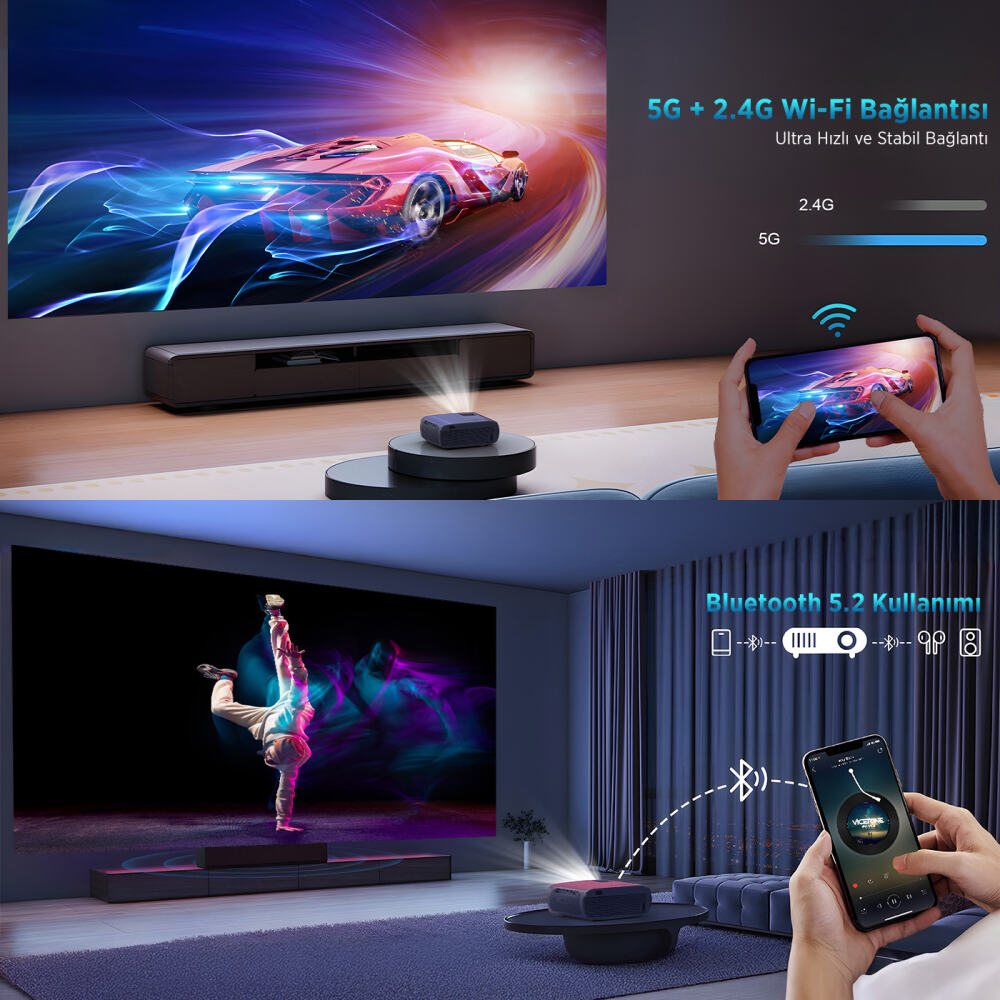 - Kablosuz Bağlantı: Android ve iOS cihazlar ile uyumlu