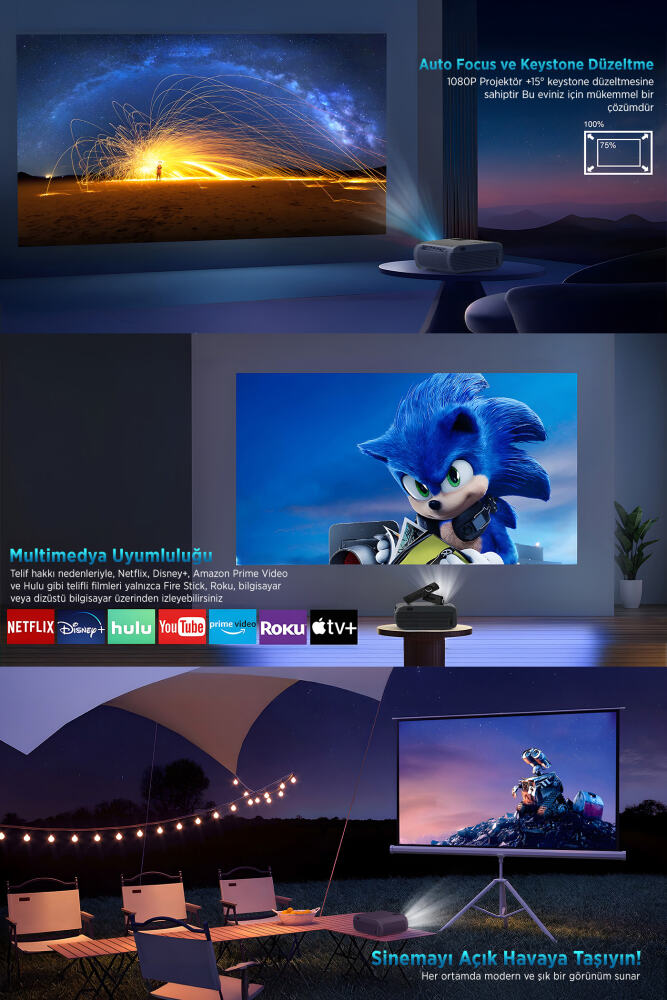 - Otomatik Odaklama ve ±15° Otomatik Dikey Trapez Düzeltme