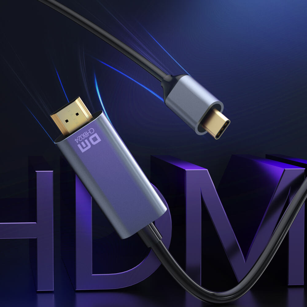 DM CHB024 Type-C to HDMI 4K 30Hz Dönüştürücü Kablo ile yeni nesil akılı telefon ve notebooklarda kullanılan Type-C arayüzünden HDMI portuna sahip ekranınızdan görüntü alabilirsiniz. Kaliteli yapısı, 24K altın kaplama konnektör ve akıllı çipinin yanında PVC malzemesi kablo kablonun dayanıklılığını arttırmaktadır. Cihazınızın desteğine göre 4K çözünürlükte saniyede 30 kareye kadar görüntü aktarımı sunmaktadır.