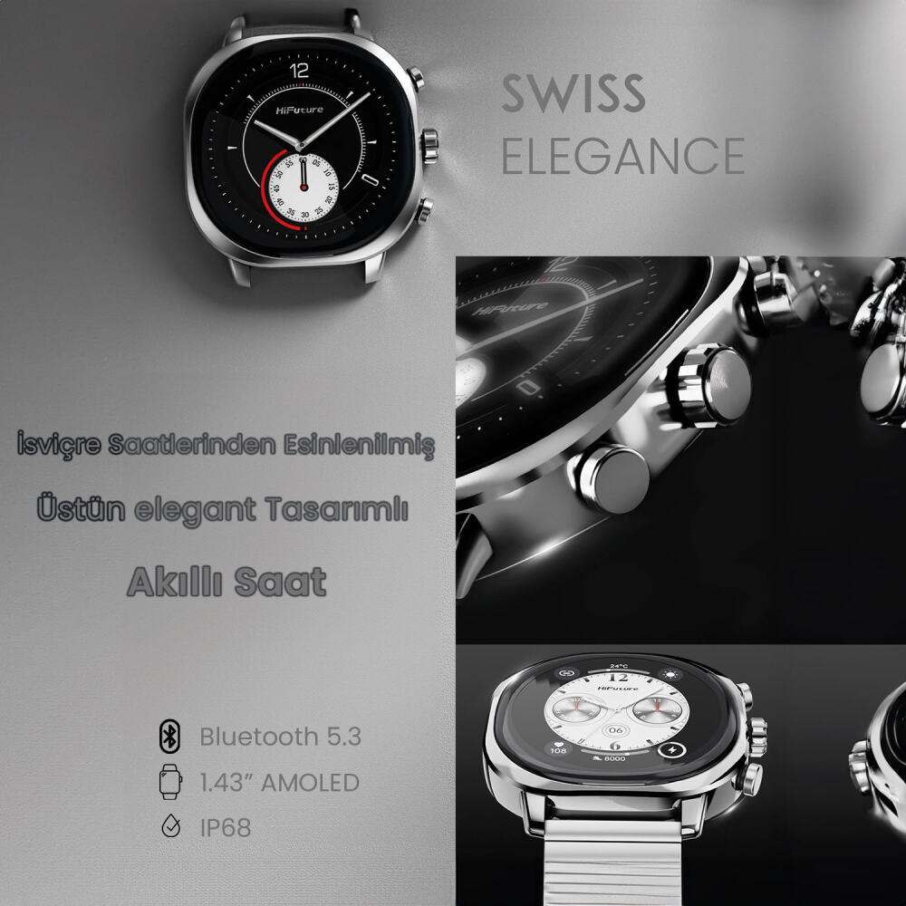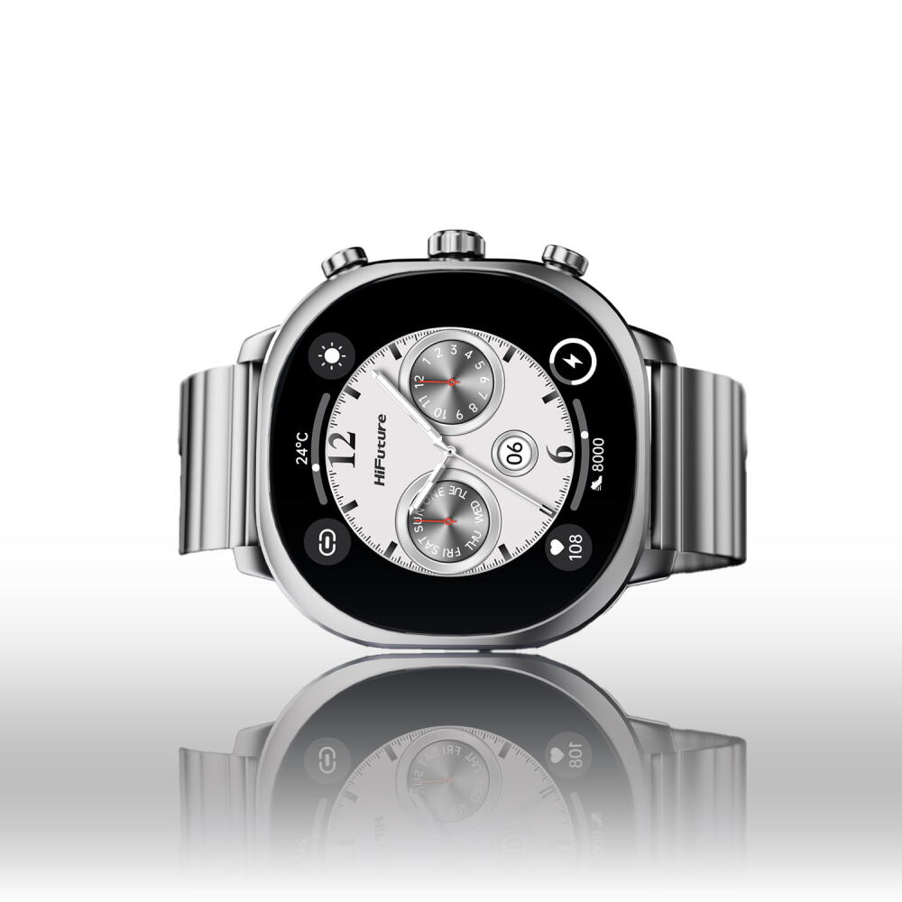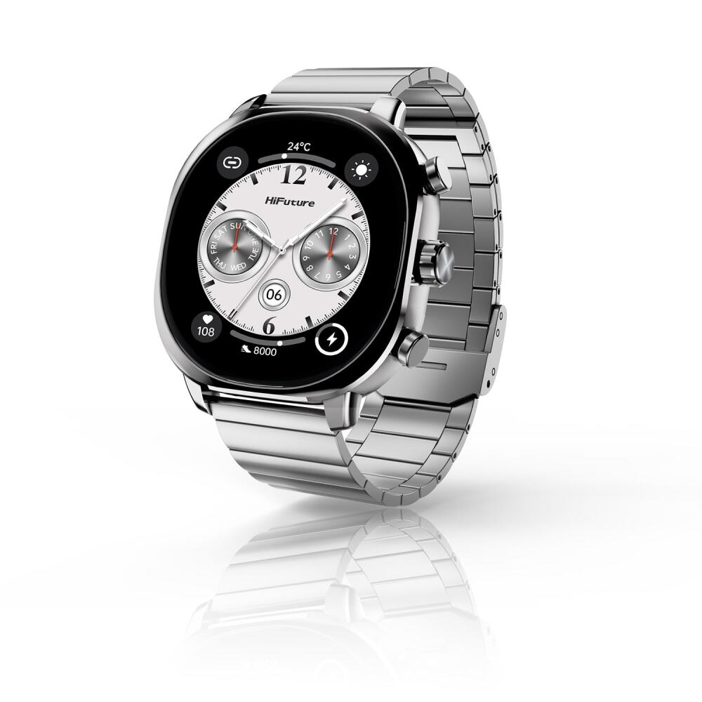HiFuture AIX Akıllı Saat, şık ve dayanıklı paslanmaz çelik kasası ile dikkat çeker. Hem siyah hem de gümüş renk seçenekleri sunan bu model, estetik bir görünüme sahiptir. Ayrıca, anti-parmak izi kaplamasıyla işlenmiş, her zaman açık olan AMOLED ekranı ile göz alıcı bir deneyim sunar. Bluetooth 5.3 çift modlu teknolojisi sayesinde, HiFuture AIX güçlü bir bağlantı sağlar. Telefon görüşmelerini Bluetooth üzerinden gerçekleştirebilir ve bağımsız müzik çalar özelliği ile müzik kontrolünü kolayca yönetebilirsiniz. 1.43 inçlik AMOLED ekran, 466×466 çözünürlük ile kristal netliğinde görüntüler sunar. Ekran, her zaman açık olan özelliği ile AOD saati sürekli görüntüler. 08×15 hoparlör ve güçlü anti-parazit mikrofon ile sesli kontrol ve telefon konuşmaları sorunsuz bir şekilde gerçekleştirilebilir.
