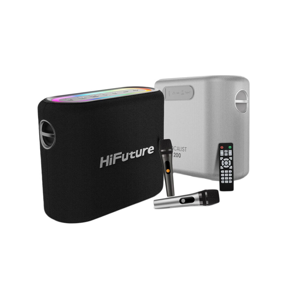 HiFuture Vocalist 200, iki mikrofon ile birlikte gelir ve karaoke partileriniz için mükemmel bir deneyim sunar. Mikrofonlar sayesinde arkadaşlarınızla düet yapmanın ve eğlencenizi ikiye katlamanın keyfini çıkarın.