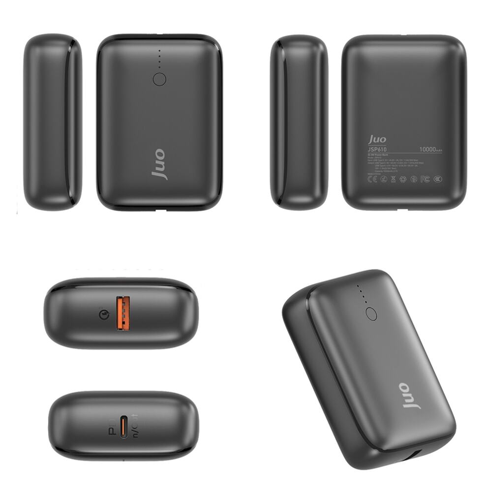Juo 10000mAh 22.5W USB-A + USB-C PD20W Taşınabilir Hızlı Şarj Cihazı Powerbank Siyah, Yüksek performans ve güvenilirlik için tasarlanan Juo JSP610 Powerbank, üstün kaliteli çipler ve optimize edilmiş şarj/deşarj döngüleriyle hızlı, güvenli ve uzun ömürlü bir kullanım sunar. 10.000mAh kapasitesi ve 22.5W güç çıkışı sayesinde aynı anda 2 cihazı (telefon, tablet, akıllı saat veya kulaklık) şarj edebilirsiniz. Bir USB-A portu ve bir USB-C portu ile donatılmıştır. USB-C portu hem giriş hem çıkış olarak kullanılabilir. USB-A çıkışları 22.5W, Type-C PD çıkışı ise 20W’a kadar şarj imkanı sunar. Dört kademeli LED ışığı sayesinde kalan güç seviyesini anında görebilirsiniz. Kompakt boyutu ve hafifliği ile kolayca taşınabilir, telefonunuzla birlikte rahatça kullanılabilir.