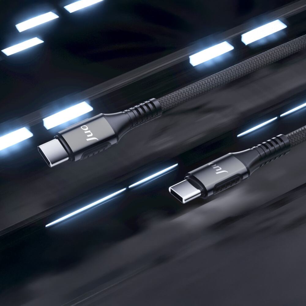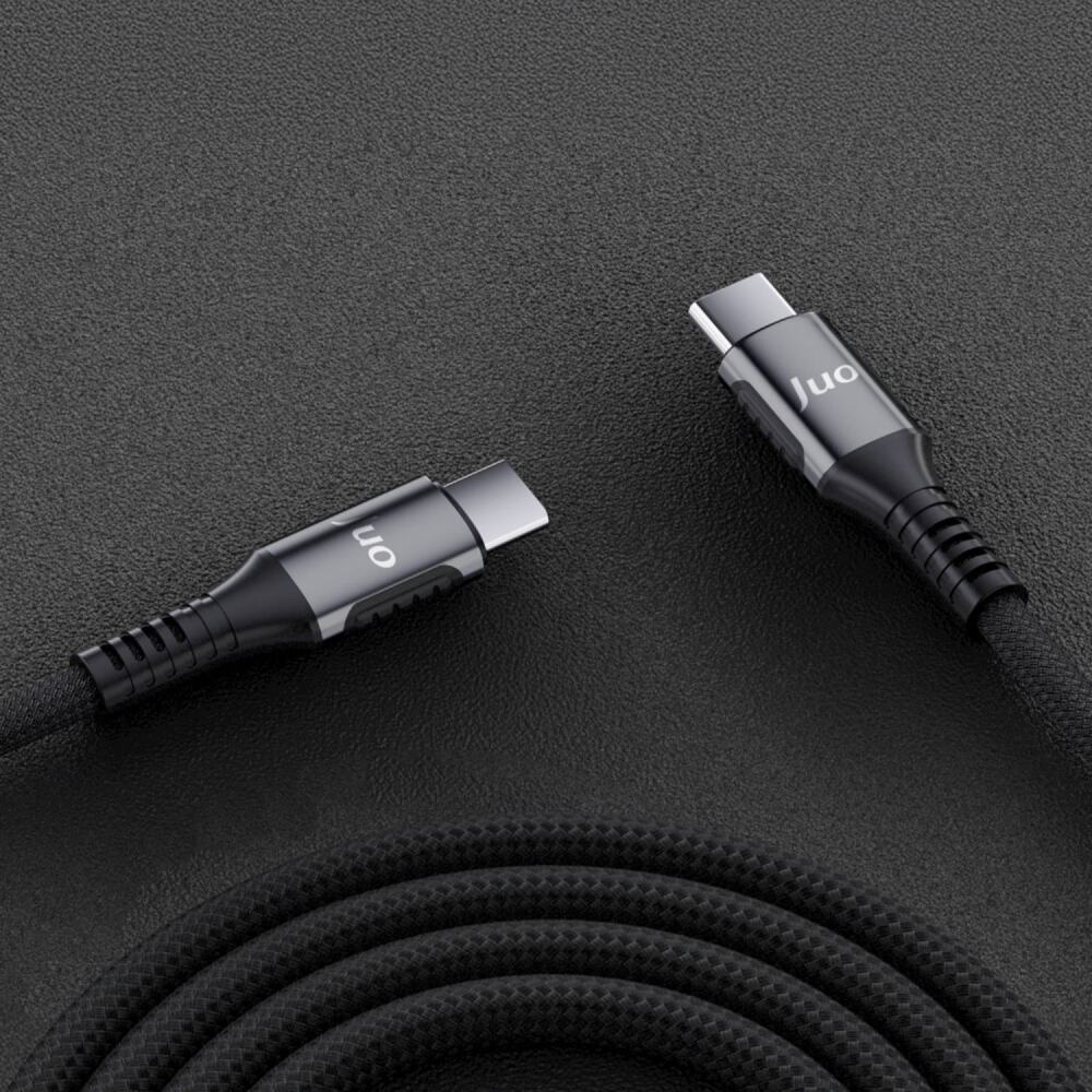 - 1 x Juo 100W 5A E-Mark Çipli PD Type-C to Type-C Örgülü Hızlı Şarj ve Data Kablosu Siyah 2 Metre