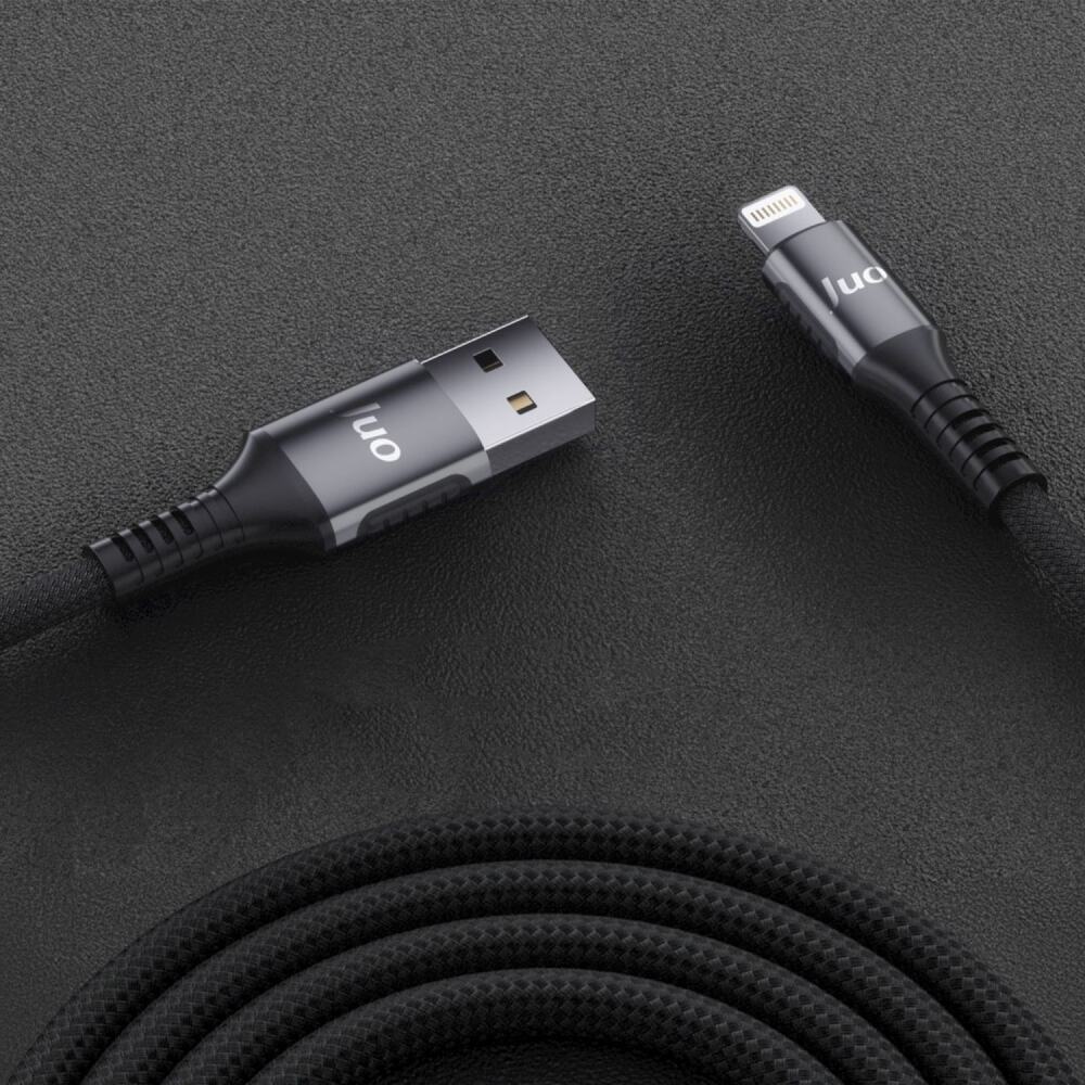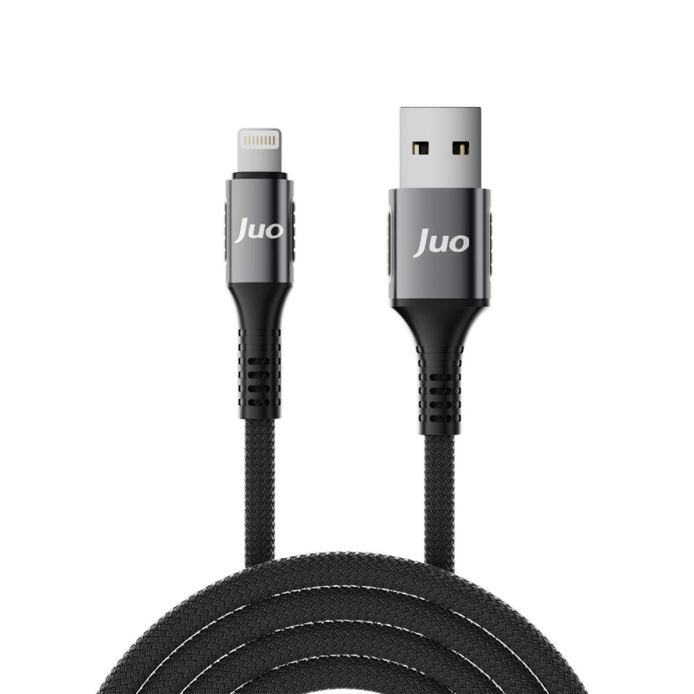 - 1 x Juo 12W 2.4A USB-A Lightning Apple iPhone iPad Örgülü Hızlı Şarj ve Data Kablosu 1 Metre Siyah