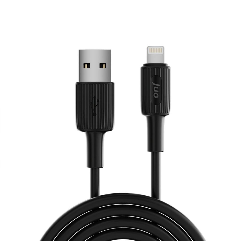 - 1 x Juo 12W 2.4A USB-A to Lightning iPhone iPad Silikon Hızlı Şarj ve Data Kablosu Siyah 1 Metre