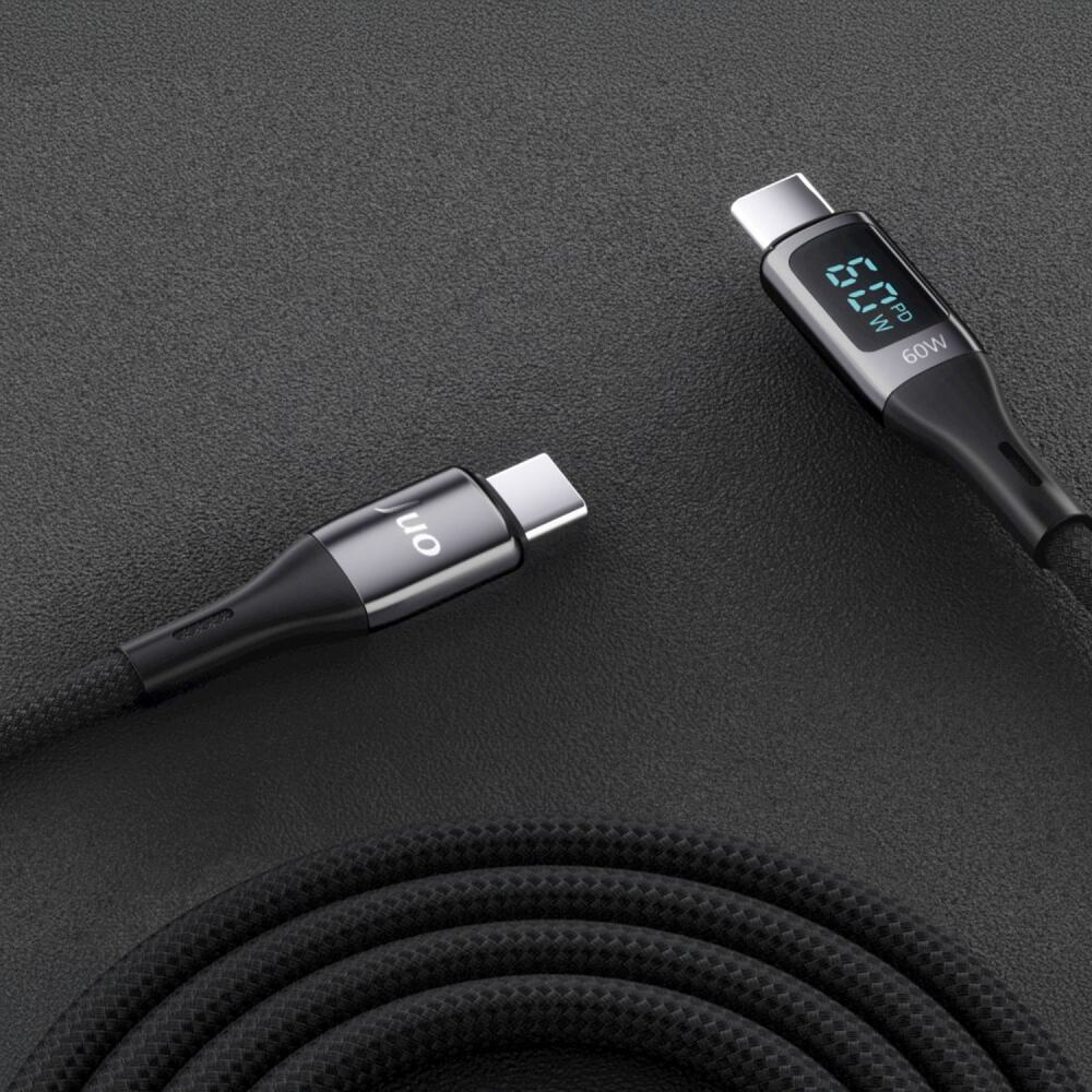 - 1 x Juo 60W Dijital Led Ekranlı Örgülü USB Type-C to Type-C Hızlı Şarj ve Data Kablosu 1 Metre