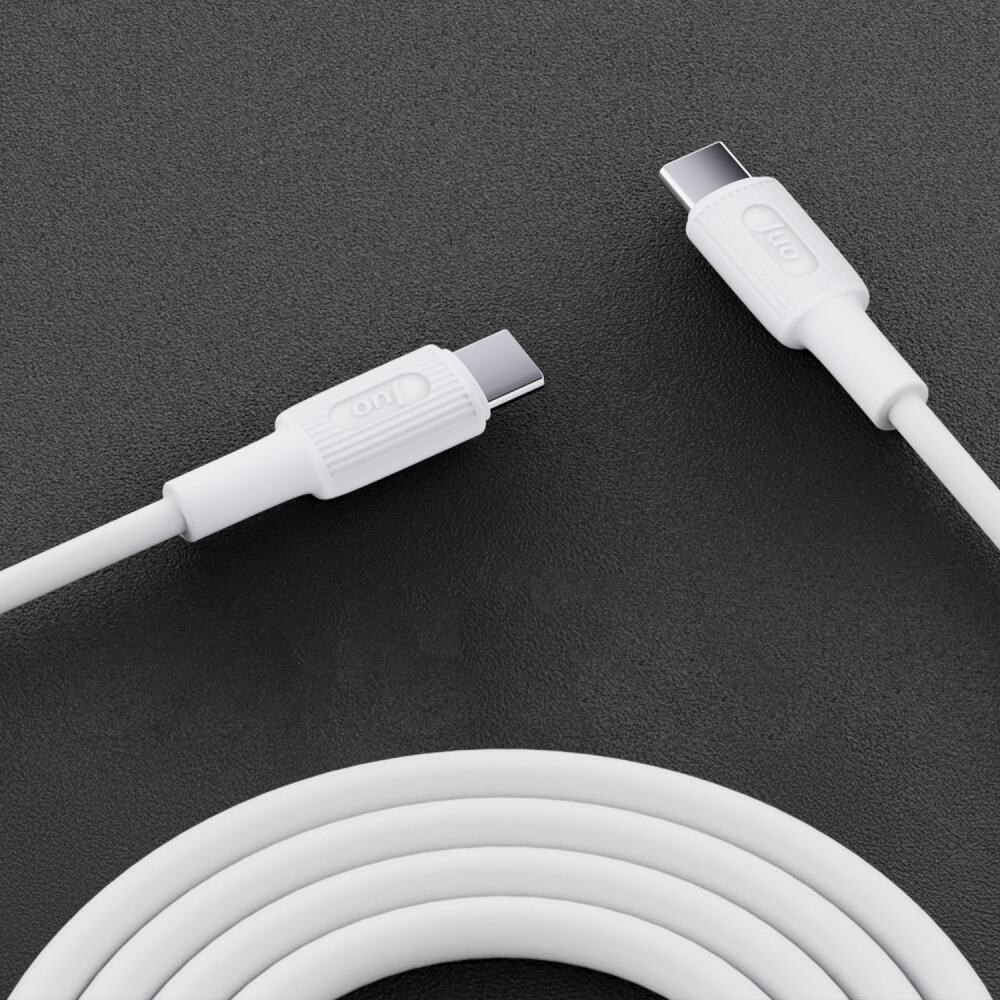 • 1 x Juo 60W USB Type-C to Type-C Silikon Hızlı Şarj ve Data Kablosu Beyaz 1 Metre