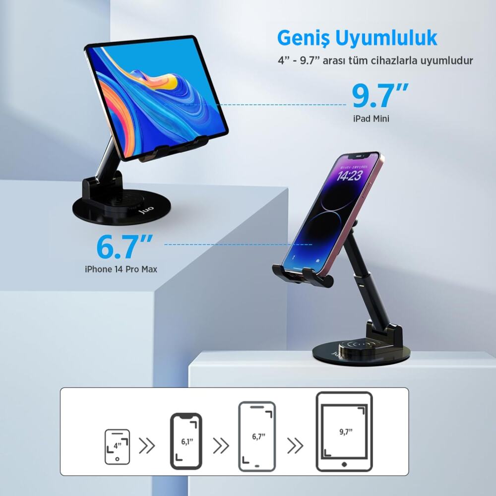 Ayarlanabilir yapısı sayesinde tüm akıllı telefonlarla uyumlu şekilde kullanılabilir.