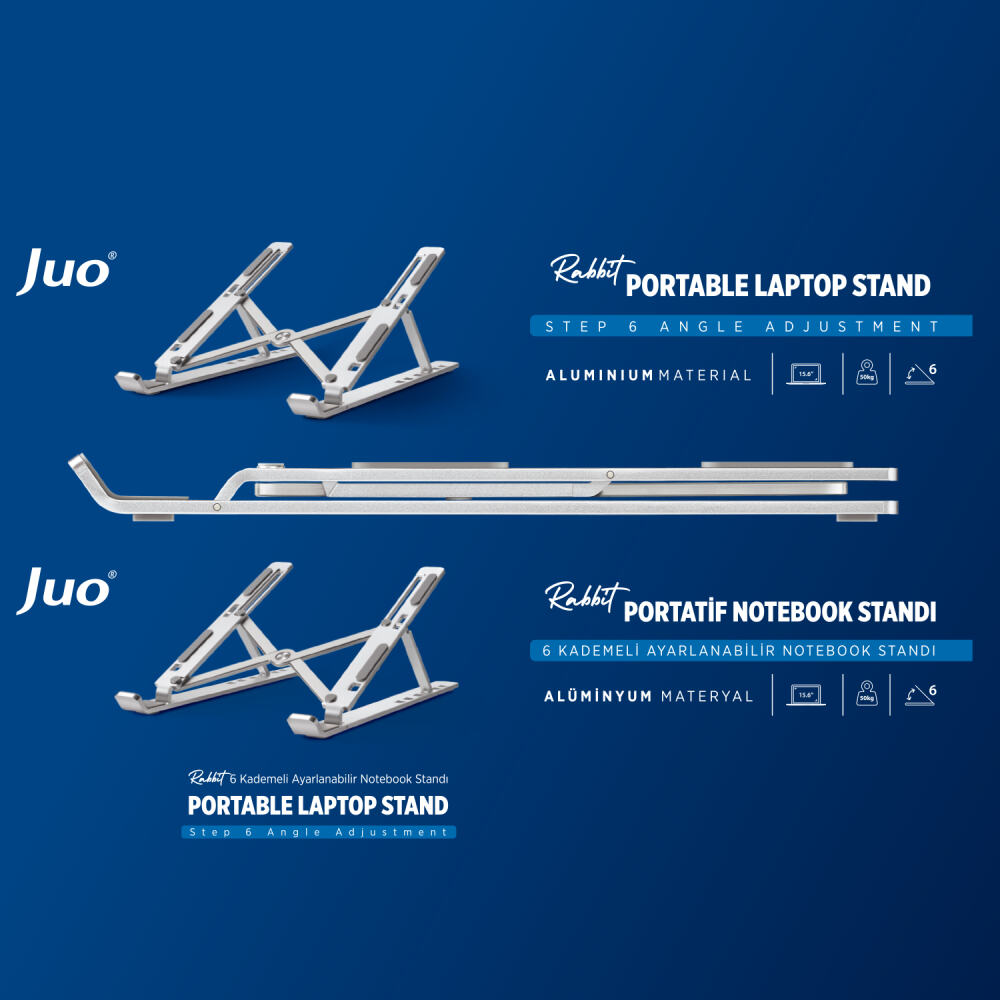 Juo Rabbit Laptop standı veya tablet standı olarak kullanılabilmektedir. 6 Kademeli ayarlanabilir açı özelliği sayesinde kendinize en uygun dereceyi ayarlayabilirsiniz.